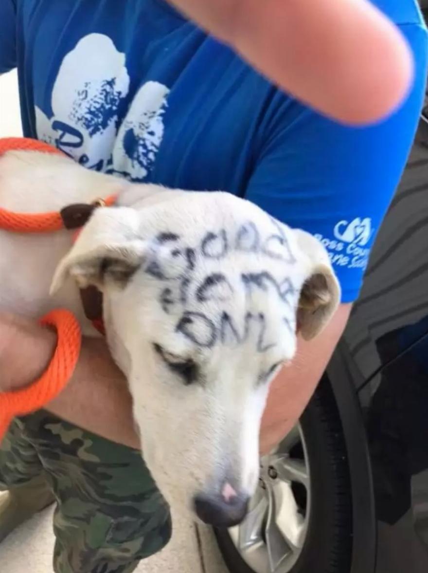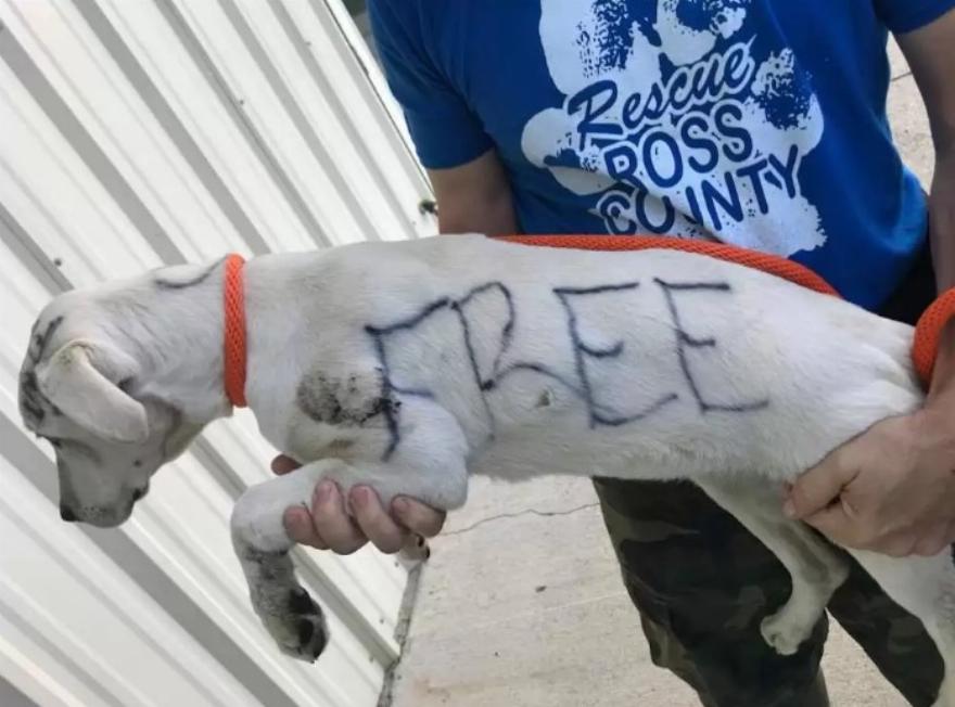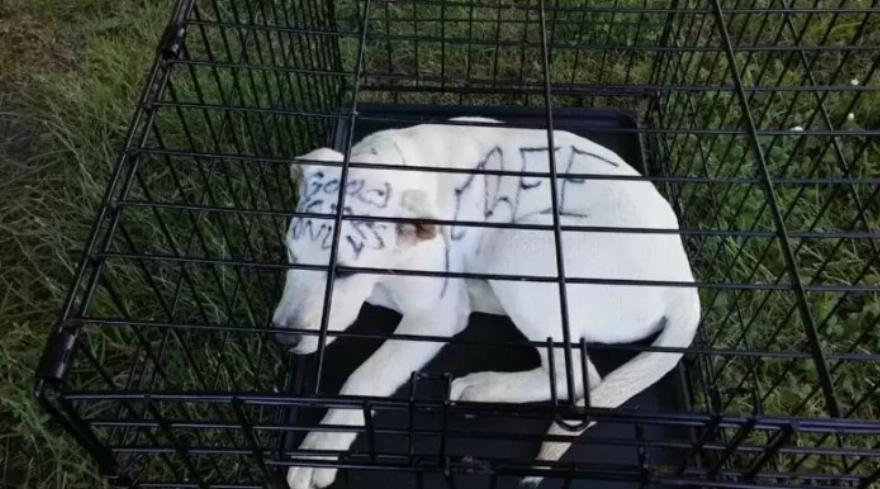 Άνθρωποι που επισκέφθηκαν ένα δημοτικό πάρκο στο Chillicothe του Οχάιο, ανακάλυψαν το σκυλί κλειδωμένο μέσα σε ένα συρμάτινο κλουβί που κάποιος είχε αφήσει στο έδαφος. Δεν υπήρχε κανένα ίχνος του ιδιοκτήτη της – εκτός από τα μηνύματα που ήταν γραμμένα με το χέρι πάνω στο λευκό τρίχωμά της με μαύρο ανεξίτηλο μαρκαδόρο.