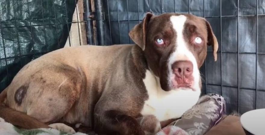 Ένα πίτμπουλ που πέρασε πάνω από ένα χρόνο ζώντας μόνο του σε έναν οπωρώνα στην αγροτική Καλιφόρνια είναι τελικά ασφαλές χάρη σε μια ομάδα αφοσιωμένων διασωστών.