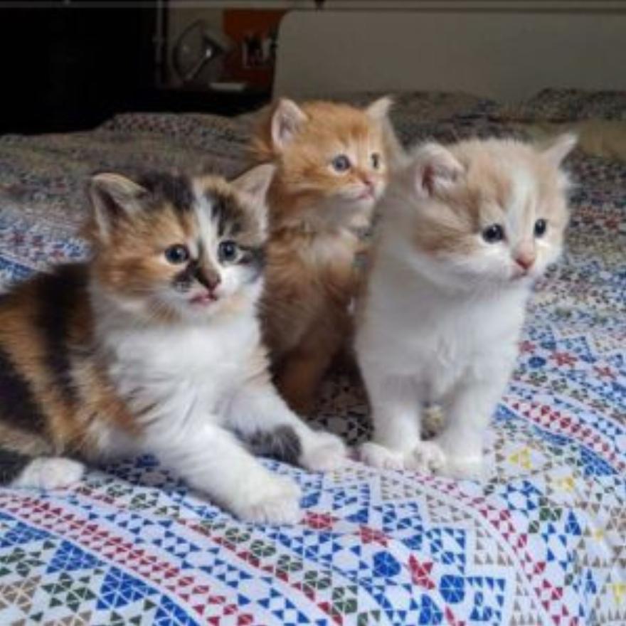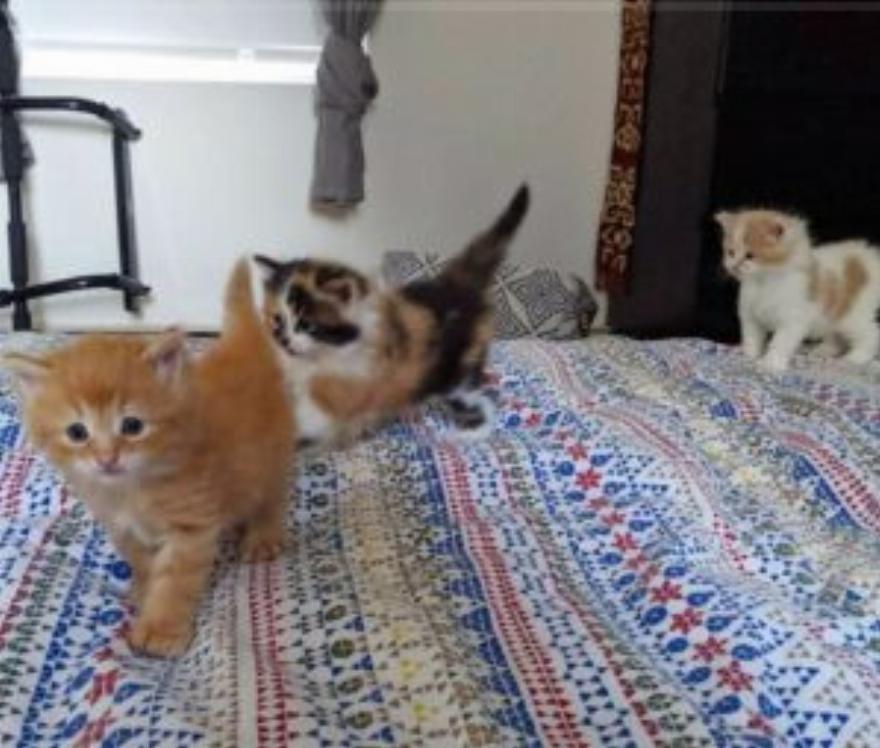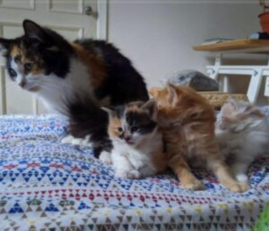 “Τα γατάκια είναι ήδη 5 εβδομάδων”, εξηγεί η Celine, “και είναι υγιή και παχιά”.