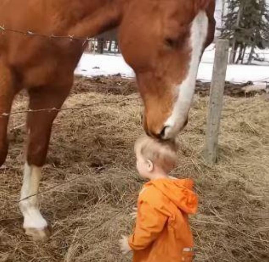Μπορείτε να δείτε στο παρακάτω βίντεο που έχει κάνει like περισσότερα από 245k από τότε που μοιράστηκε στο διαδίκτυο ένα μικρό αγόρι με μπλε μπότες και πορτοκαλί παλτό να έχει μερικά φιλιά στα χείλη με ένα ευγενικό άλογο. Πολλοί άνθρωποι έχουν αλληλεπιδράσει με το βίντεο εκφράζοντας ότι ήταν ένα από τα πιο αξιολάτρευτα βίντεο που έχουν δει ποτέ.