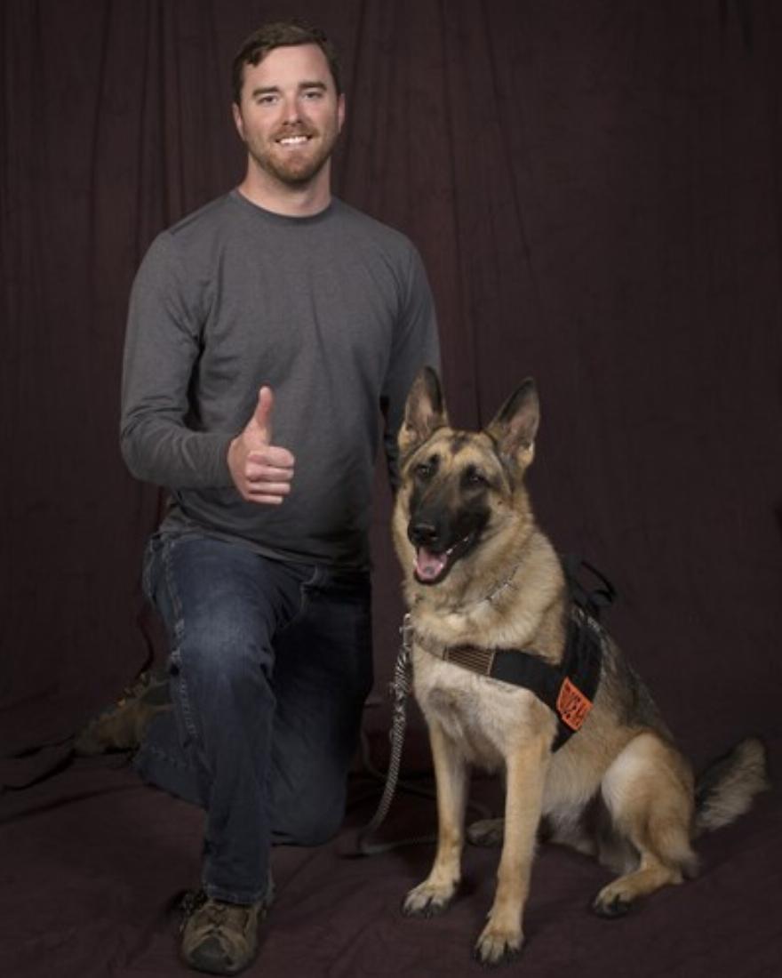 Δεδομένου ότι το VA δεν παρείχε χρηματοδότηση και οι μη κερδοσκοπικοί οργανισμοί είχαν μεγάλο χρόνο αναμονής, διερεύνησα άλλες επιλογές. Βρήκα έναν φίλο που εκτρέφει γερμανικούς ποιμενικούς και έναν άλλο φίλο από το Σώμα Πεζοναυτών που ήταν εκπαιδευτής σκύλων. Ο εκπαιδευτής επεκτεινόταν στην εκπαίδευση σκύλων για τα συμπτώματα της κατάθλιψης και του μετατραυματικού στρες στους βετεράνους, για να αντιμετωπίσει την επιδημία αυτοκτονιών των βετεράνων.