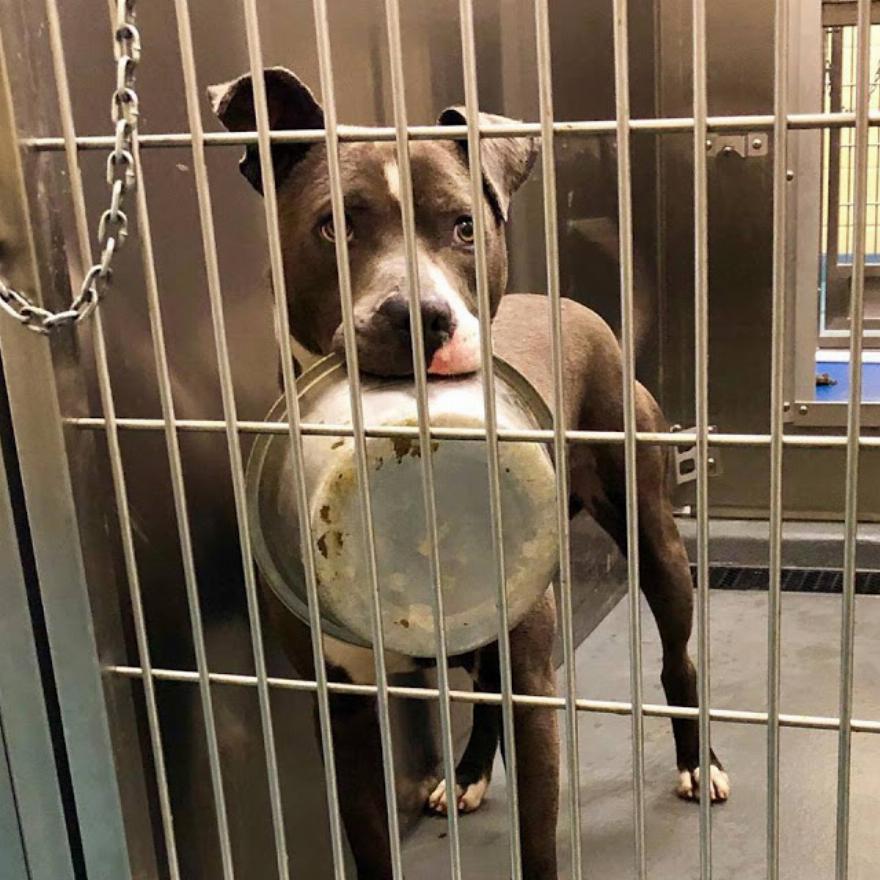 Ενώ βρισκόταν στο καταφύγιο, ο Oliver συνέχισε να μεταφέρει το κύπελλο του φαγητού πέρα δώθε, και οι υπάλληλοι του καταφυγίου σκέφτηκαν ότι ήταν απίστευτα αξιολάτρευτο. Αλλά, αν ο Oliver δεν μπορούσε να βρει ένα σπίτι, σύντομα θα του κάνανε ευθανασία.