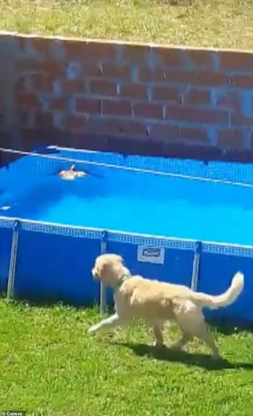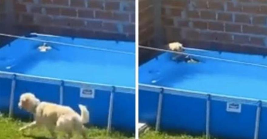 Γκόλντεν ριτρίβερ εντοπίζει ένα πτηνό να πνίγεται στην πισίνα, αναλαμβάνει δράση και γίνεται viral