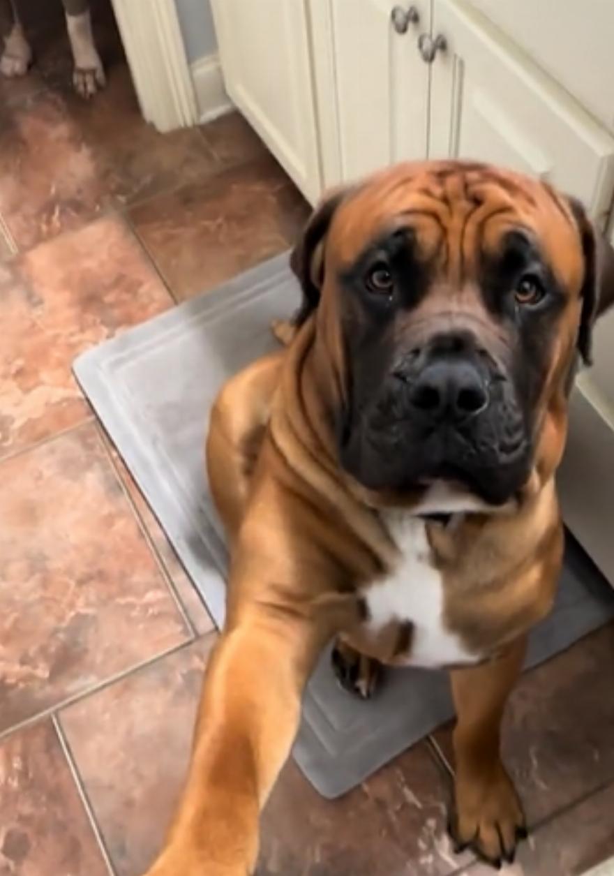 Στη συνέχεια, το Νοτιοαφρικανικό Μαστίφ του δίνει χειραψία, όπως συνήθιζαν να ανταλλάσσουν κατά τη διάρκεια της εκπαίδευσης του Kane στην τουαλέτα. Ο άλλος σκύλος του άνδρα, η Ζήνα, φαίνεται επίσης στο παρασκήνιο να τον επευφημεί.