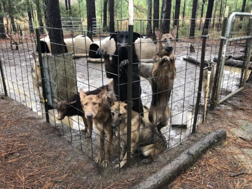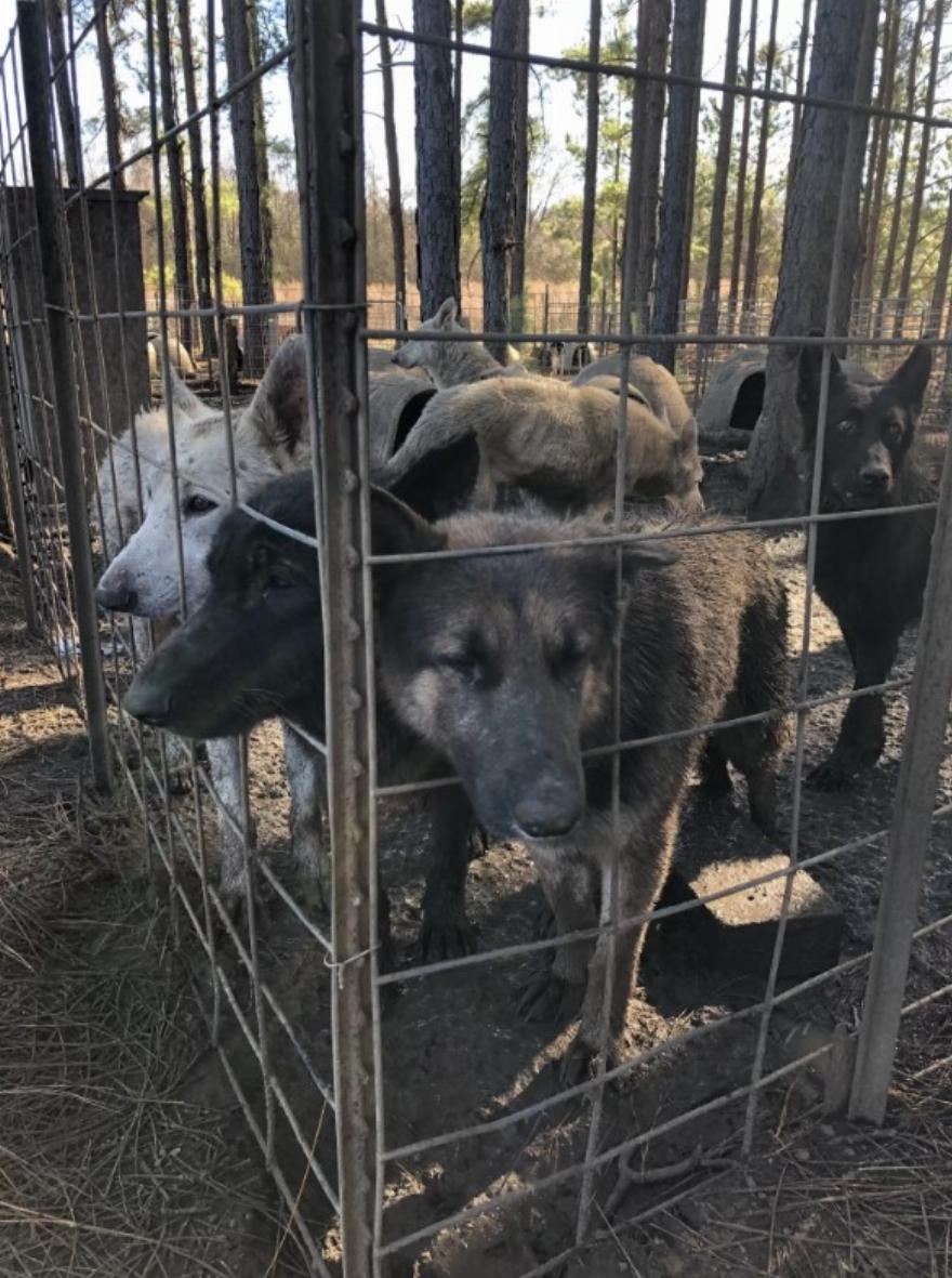 Σε ένα κτήμα στην κομητεία Κάντλερ της Τζόρτζια, περισσότεροι από 160 γερμανικοί ποιμενικοί ήταν κλειδωμένοι σε βρώμικα, λασπωμένα κλουβιά, ώστε να μπορούν να εκτραφούν και τα κουτάβια τους να πωληθούν με σκοπό το κέρδος.