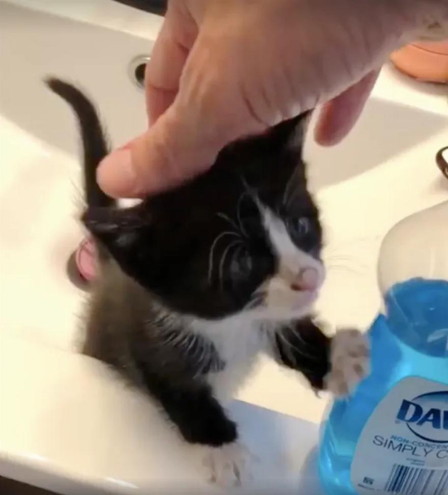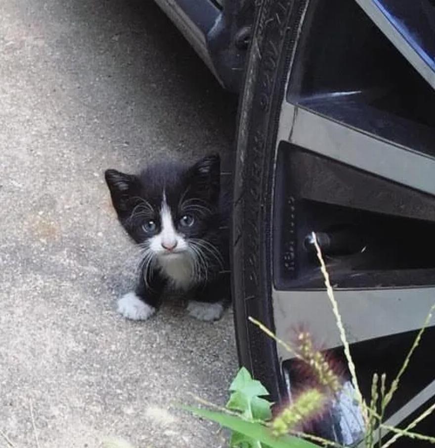Ένα ασπρόμαυρο γατάκι περιπλανήθηκε στη πίσω αυλή ενός σπιτιού, αλλά έφυγε γρήγορα. Όταν επέστρεψε, πήγε κατευθείαν στην οικογένεια για βοήθεια.