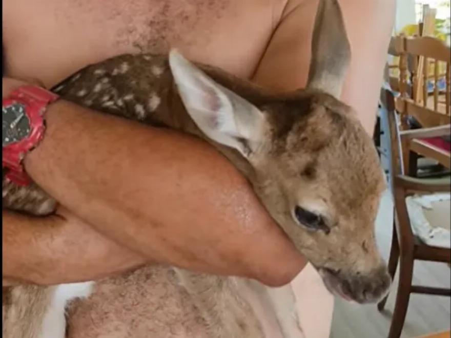 Σε βίντεο που δημοσίευσε χρήστης του Facebook, απεικονίζεται ένα νεογέννητο ελαφάκι που σώθηκε από τις φλόγες, όμως η μητέρα του δεν τα κατάφερε.