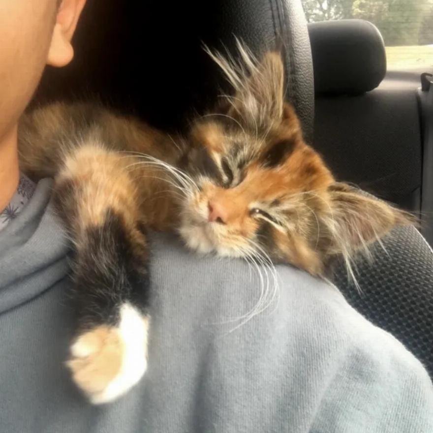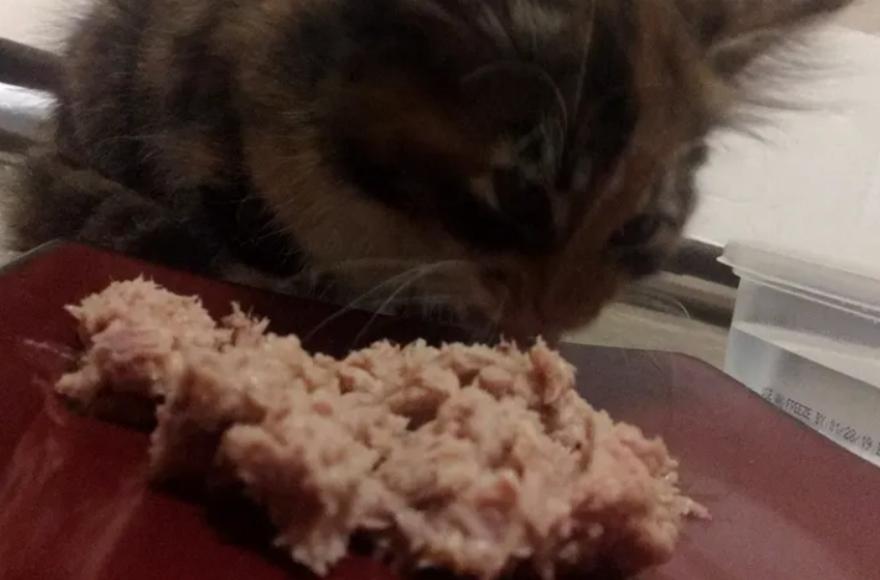 Ένα μικρό αδέσποτο γατάκι, έκανε βόλτες έξω από ένα διαμέρισμα στη Βόρεια Καλιφόρνια. Ένας άντρας της πρόσφερε λίγο τόνο και εκείνη γαντζώθηκε πάνω του.