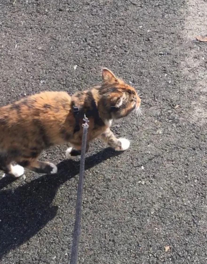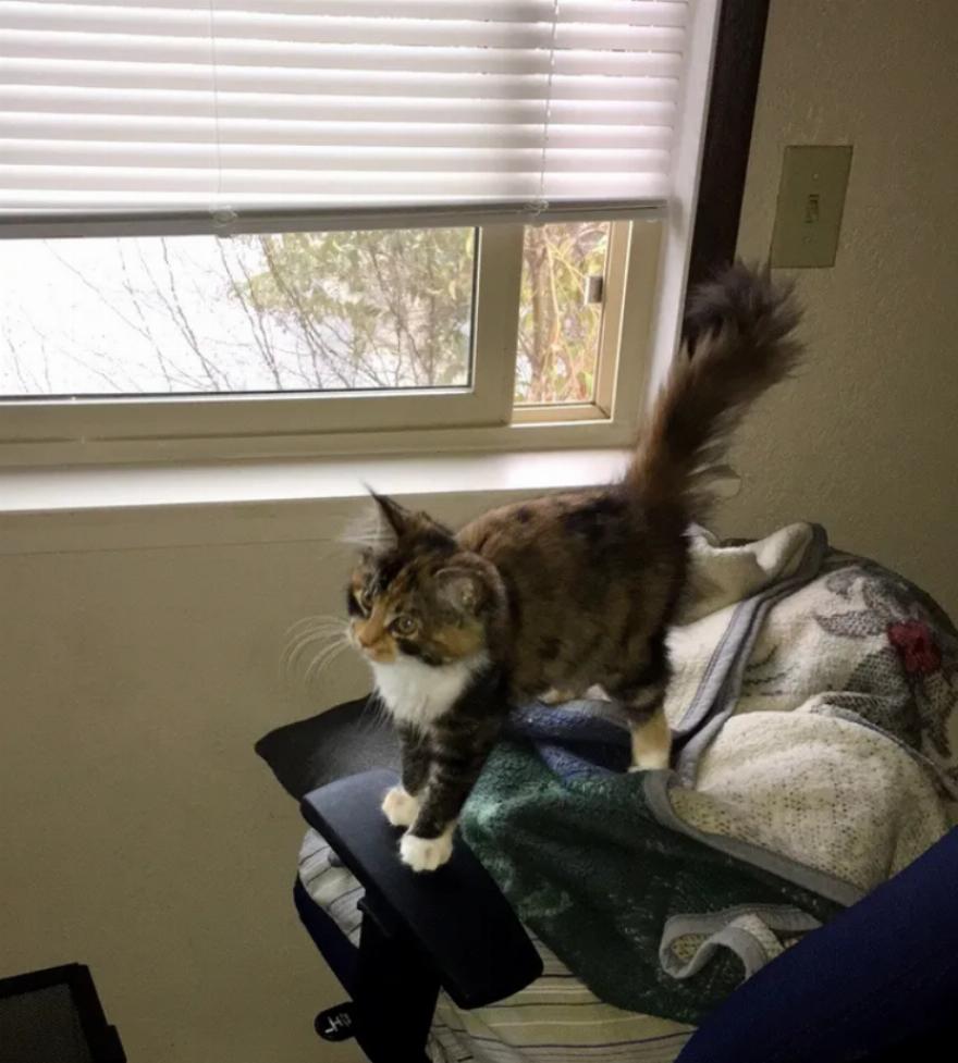«Έφτιαχνα φαγητό όταν ένας από τους συγκάτοικούς μου είπε: “Γεια, υπάρχει μια γάτα εδώ”. Κοίταξα γύρω από τη γωνία και εκείνη προχωρούσε προσεκτικά λίγα μέτρα προς την πόρτα, μυρίζοντας το έδαφος ενώ μας παρακολουθούσε», είπε ο Άνταμ στο Love Meow.