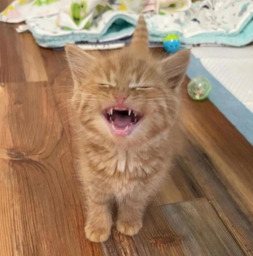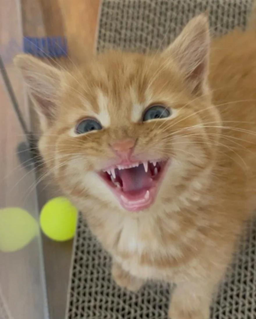 Ο Butterball, το μικροσκοπικό αλλά πανίσχυρο γατάκι, νιαουρίζει (ουρλιάζει) αδιαμαρτύρητα στους ανθρώπους του και δεν θα σταματήσει μέχρι να πάρει αυτό που θέλει.