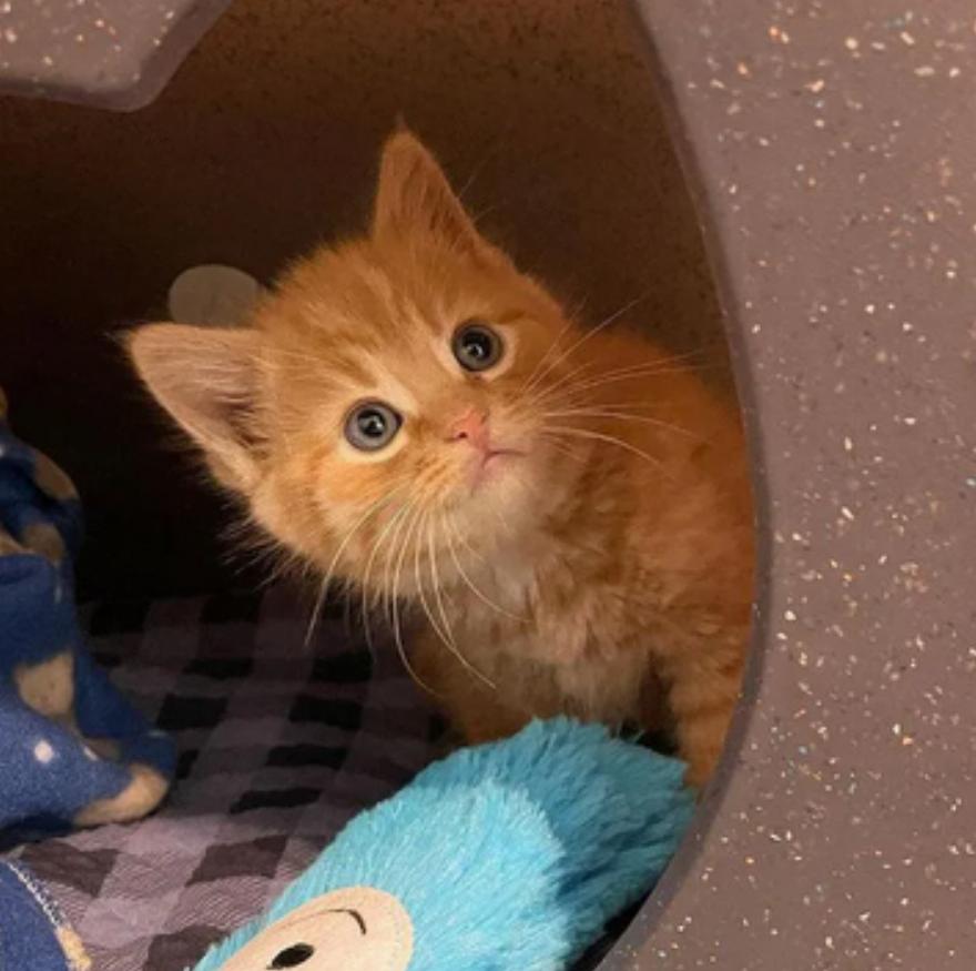 Ένα μικρό πορτοκαλί γατάκι μεταφέρθηκε στο IndyHumane στην Ινδιανάπολη της Ιντιάνα για μια ευκαιρία σε μια καλύτερη ζωή. Κατά την άφιξή του ήταν λίγο ντροπαλό και προσπάθησε να κρυφτεί κάτω από όποιο κάλυμμα μπορούσε να βρει.