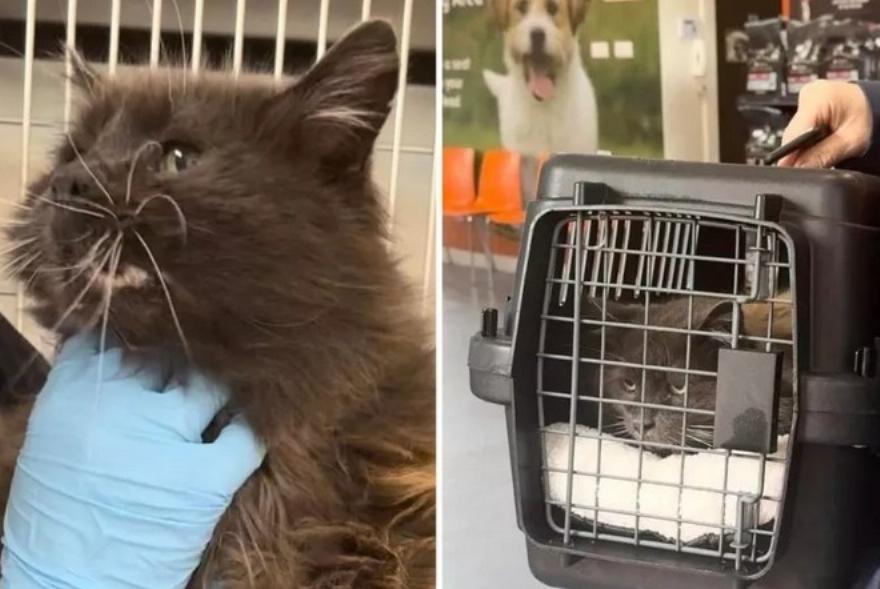 Αφού διέσωσαν τον χνουδωτό μαύρο γάτο και τον έφεραν πίσω στο καταφύγιο, τον εξέτασαν κτηνίατροι και διαπίστωσαν ότι είχε μικροτσίπ, καταχωρημένο στους ιδιοκτήτες του.