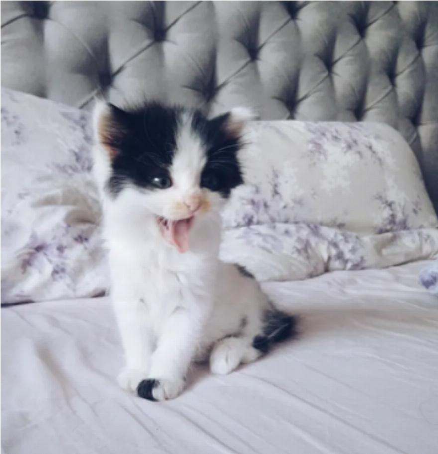 Το γατάκι ήταν ολομόναχο, χωρίς να βλέπει τη μητέρα του. “Όταν το βρήκα, ήταν μικροσκοπικό, περίπου τριών εβδομάδων”, δήλωσε η Mila.