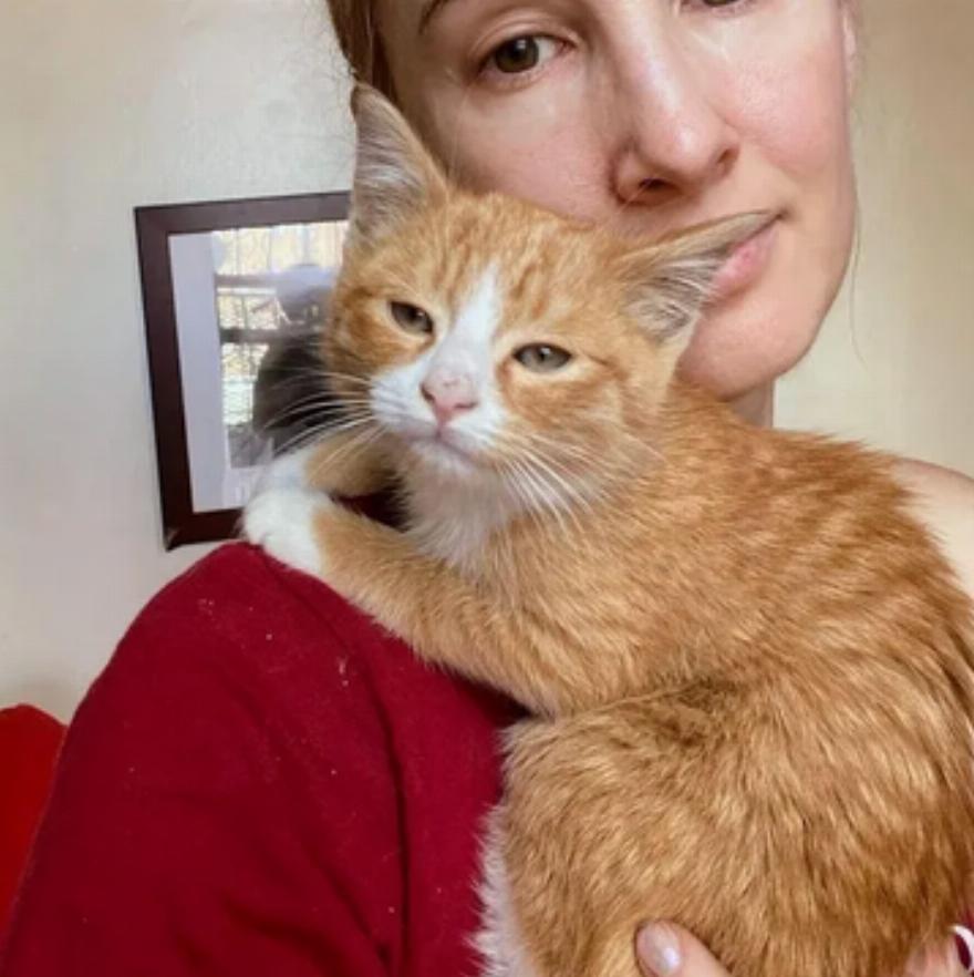 Το tabby αγόρι απολαμβάνει την άνετη νέα του ζωή και όλη την προσοχή. “Έχει τελειοποιήσει την τέχνη της “αγκαλιάς επίθεσης” – θα σας καταδιώξει και θα ορμήσει πάνω σας ενώ εσείς βλέπετε τηλεόραση στον καναπέ και μετά θα σας αγκαλιάσει και θα γουργουρίσει.”