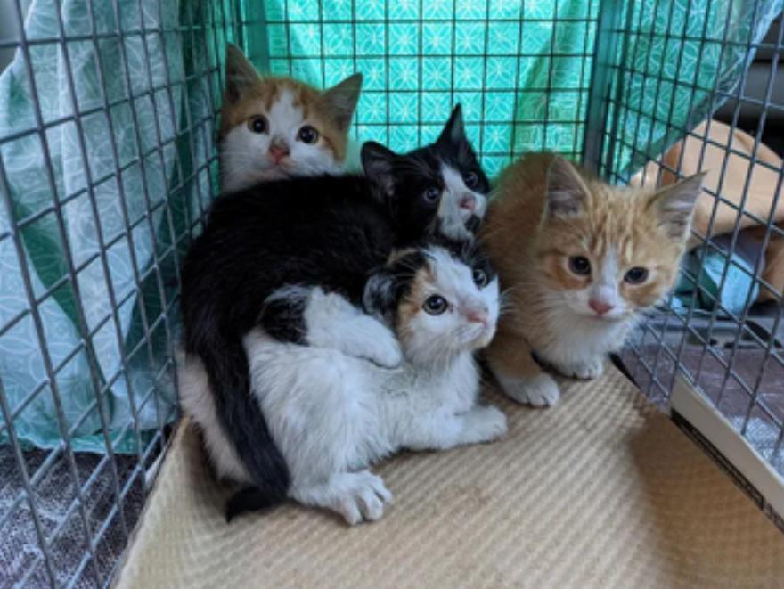 Τα γατάκια ήταν περίπου έξι εβδομάδων αλλά πολύ άγρια. Τοποθετήθηκαν αμέσως σε ανάδοχη οικογένεια, καθώς είχαν μεγάλη ανάγκη κοινωνικοποίησης. Η μητέρα τους ήταν έτοιμη να αποσυρθεί από τη μητρότητα. Στειρώθηκε, εμβολιάστηκε, έβαλε μικροτσίπ.