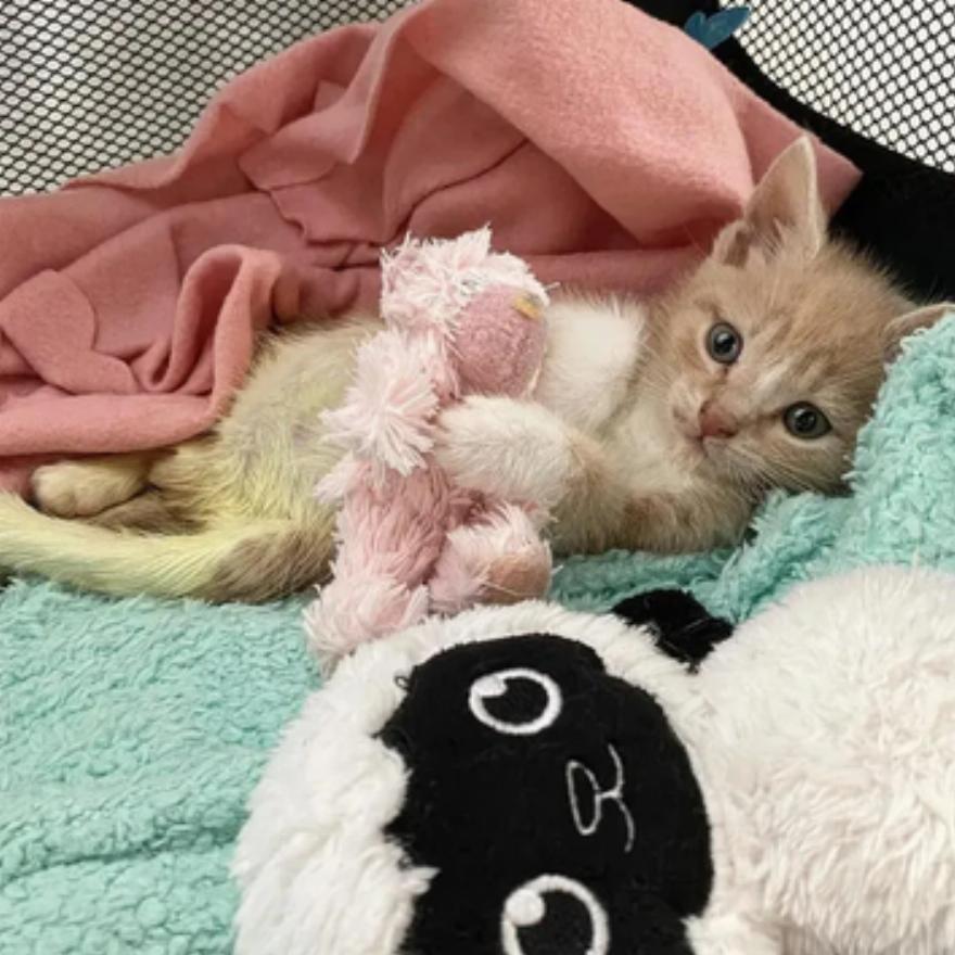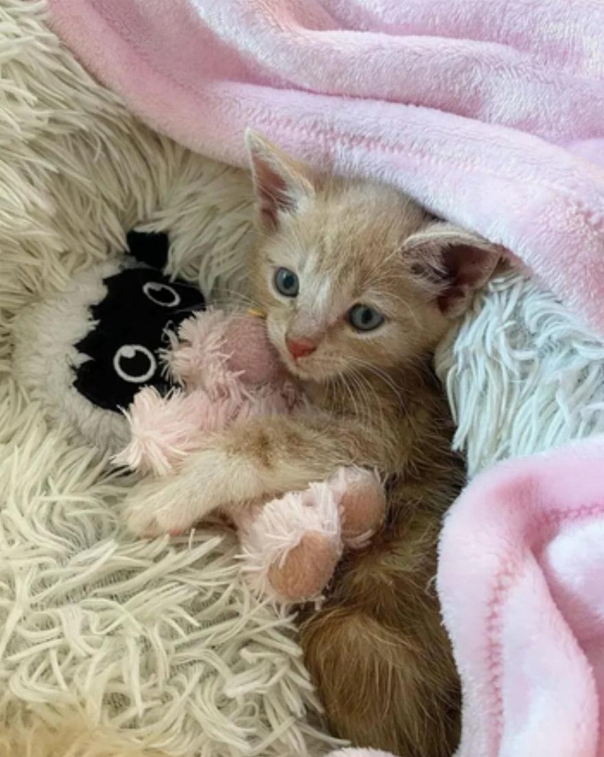 Μετά από μια επίσκεψη στον κτηνίατρο, διαπιστώθηκε ότι το γατάκι δεν αισθανόταν τίποτα από τη μέση του μέχρι την άκρη της ουράς του.
