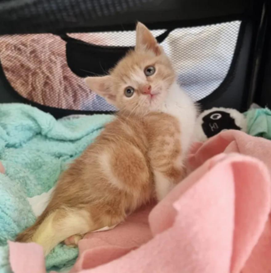 Η Jessica Ruf, η ιδρύτρια της οργάνωσης Kitten Carer Rescue, ενημερώθηκε για ένα γατάκι με παράλυτα πίσω πόδια, που χρειαζόταν διάσωση. Εκείνη ανέλαβε αμέσως δράση και το πήρε σε ασφαλές μέρος.