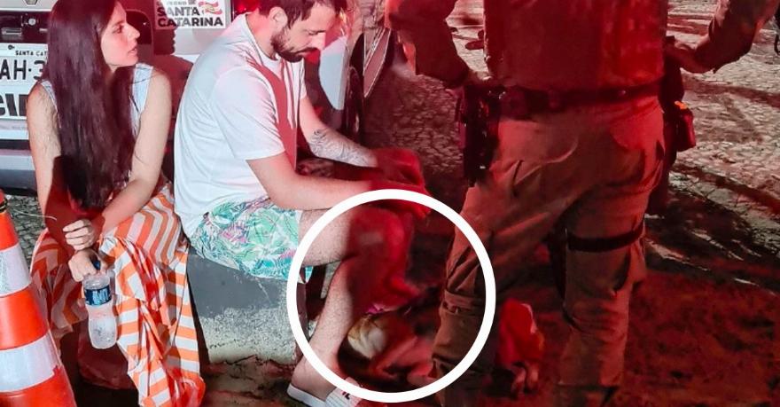 ” Χθες μου τράβηξε την προσοχή αυτή η σκηνή. Δεν ξέρω αν το προσέξατε, αλλά εκεί, ανάμεσα στα πόδια του αγοριού, είναι ένα κουτάβι ξαπλωμένο εκεί . Επίσης. Λίγο μετά την αντίστροφη μέτρηση, αυτό το ζευγάρι είδε αυτό το κουτάβι μπερδεμένο στο δρόμο, εντελώς χαμένο , με μεγάλο κίνδυνο να τραβηχτεί”, δήλωσε ο αστυνομικός Nicolás Vasconcelos Marques , από τη Στρατιωτική Αστυνομία της Σάντα Καταρίνα .