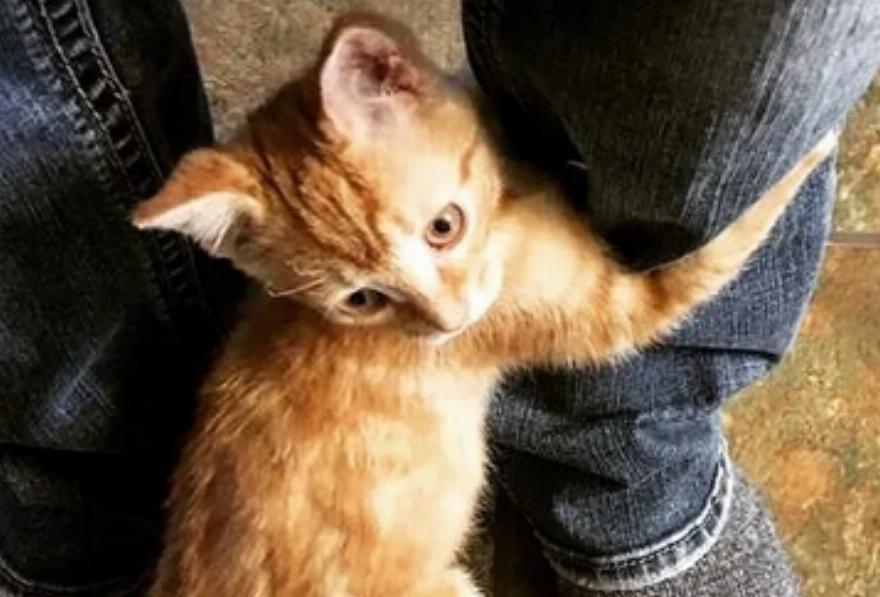 Όταν ήρθε η ώρα να φύγει το γατάκι γαντζώθηκε στο χέρι του και δεν το άφηνε