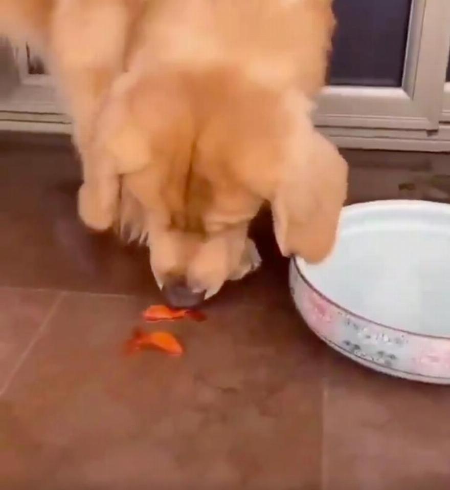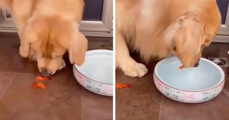 Μπορείτε να δείτε στο παρακάτω βίντεο ότι το Γκόλντεν Ριτρίβερ παίρνει ένα χρυσόψαρο και το βάζει πίσω στη γυάλα του. Το ίδιο κάνει και με ένα δεύτερο ψάρι για να τα κρατήσει και τα δύο ασφαλή. Μερικοί άνθρωποι θύμωσαν εξαιτίας του βίντεο καθώς είπαν ότι το ψάρι δεν θα έπρεπε να βρίσκεται σε μπολ στο πάτωμα.