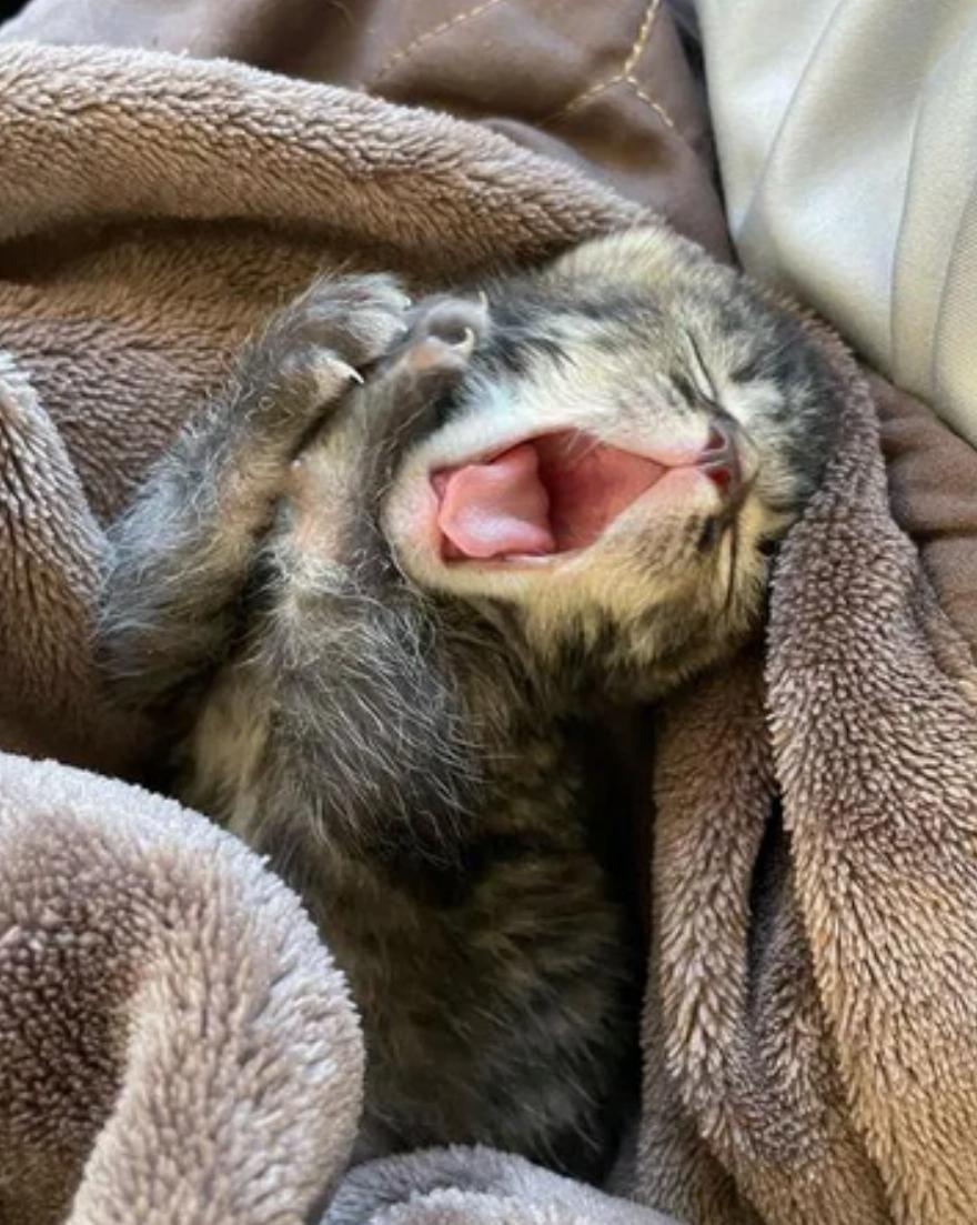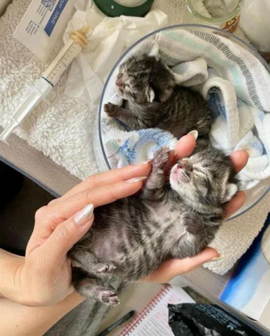 “Ο κτηνίατρος διαπίστωσε ότι η μαμά δεν θα μπορούσε να θηλάσει στην κατάστασή της”, μοιράστηκε η Caroline. “Παραλάβαμε τα γατάκια από το κτηνιατρείο εκείνο το βράδυ και τα πήραμε στο σπίτι και σε θερμοκοιτίδα”.