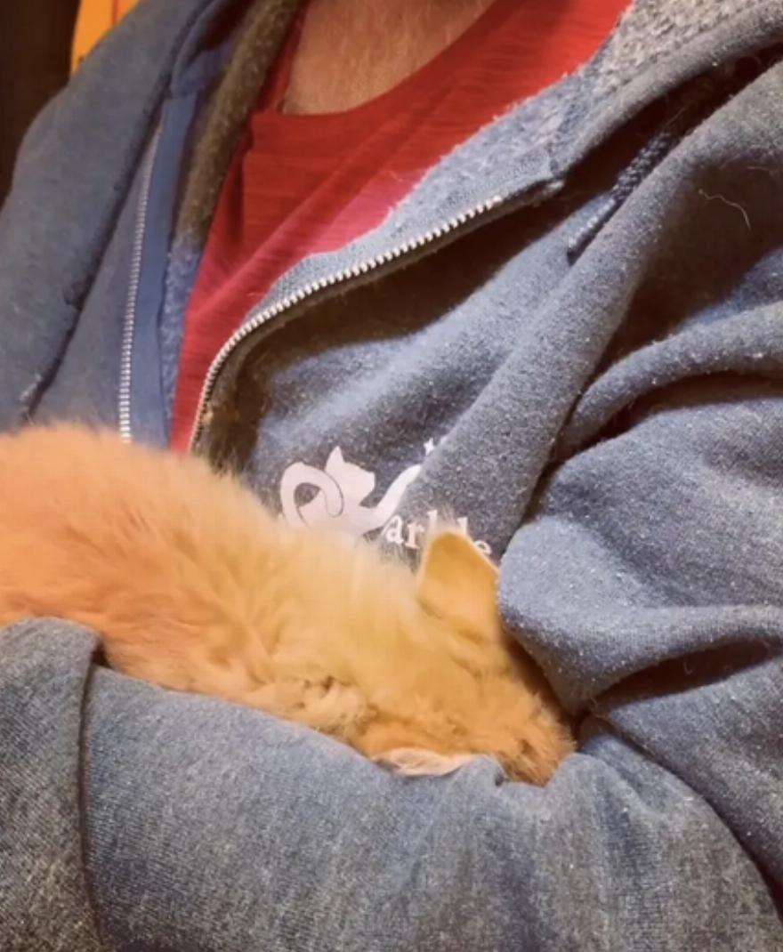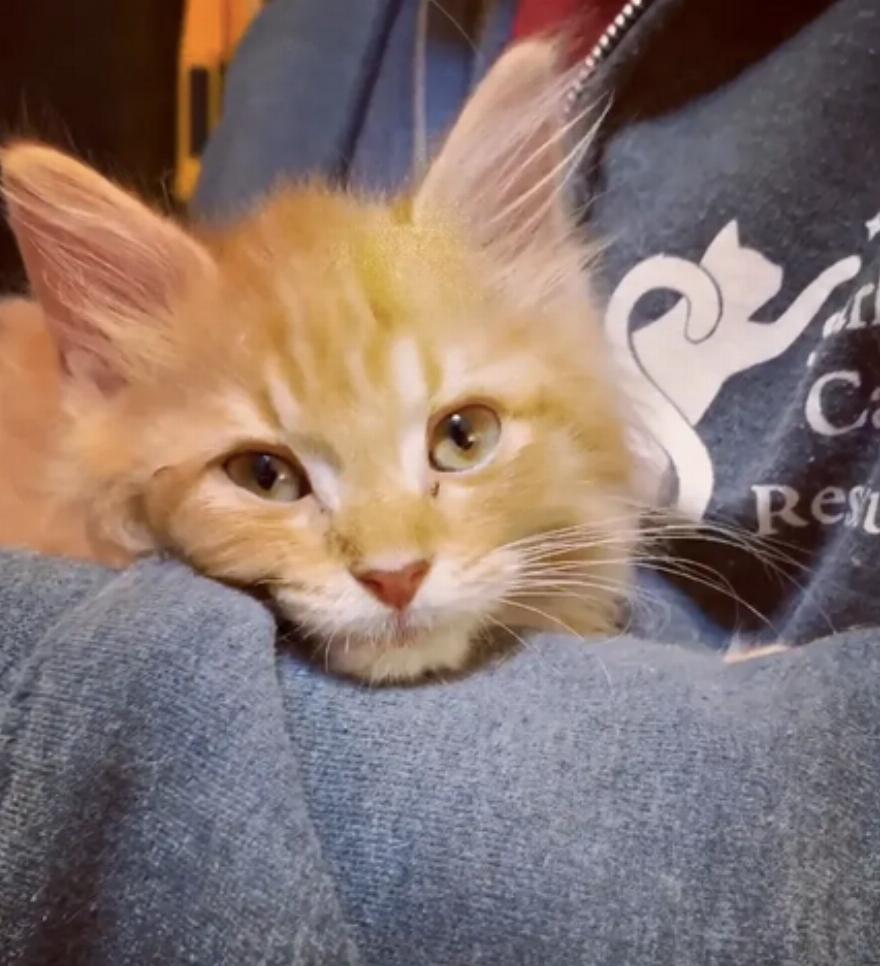 Ένας καλός Σαμαρείτης παρατήρησε ότι το γατάκι ήταν στο ακίνητο για δύο ημέρες και κανείς δεν είχε έρθει να το πάρει ή να προσφέρει βοήθεια. Επικοινώνησε αμέσως με την Sparkle Cat Rescue, μια τοπική ομάδα διάσωσης, πριν να είναι πολύ αργά.