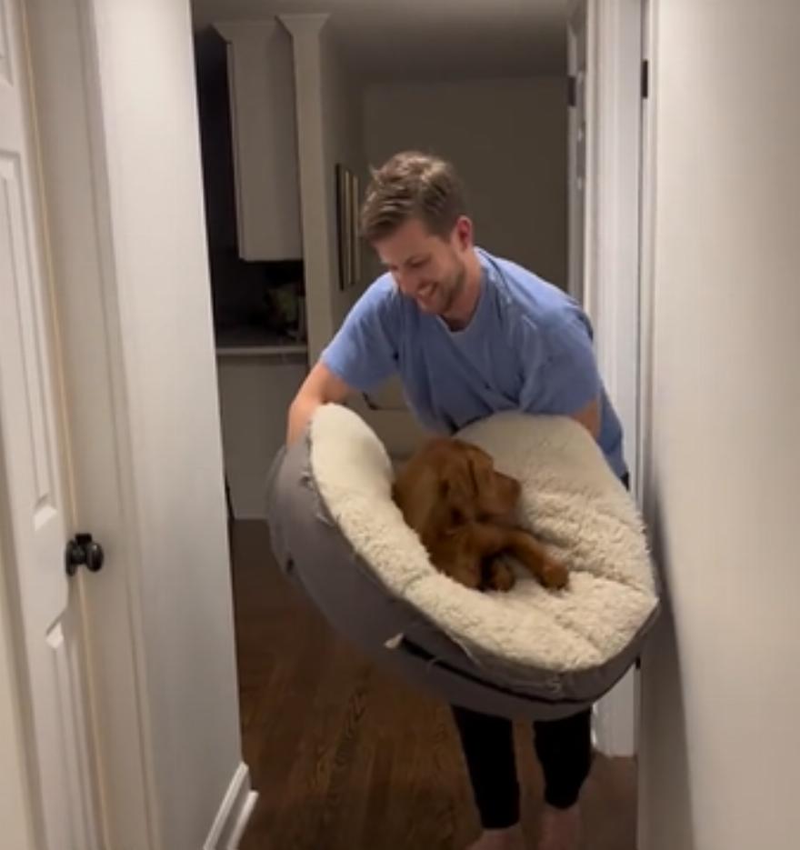 Η Becca μοιράστηκε το αξιολάτρευτο κλιπ με τον Archie να δείχνει εντελώς εξαντλημένος στον λογαριασμό της στο TikTok (@archie.and.becca). Αφού βολεύτηκε στο δικό του κρεβάτι, δεν υπήρχε περίπτωση ο Archie να σηκωθεί και να περπατήσει μέχρι την κρεβατοκάμαρα των ιδιοκτητών του, οπότε έμεινε στη θέση του, ενώ εκείνοι τον μετέφεραν στο κρεβάτι.