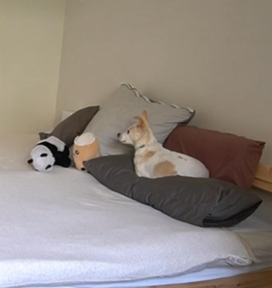 Μόλις πάρει το πράσινο φως, είναι η ώρα που ο Mochi να πηδάει στο κρεβάτι πριν μυρίσει γύρω του. “Ίσως η ανθρώπινη μυρωδιά τον παρηγορεί;” Ο Liang διατύπωσε τη θεωρία του. Δεδομένου ότι έχει αποδειχθεί ότι τα σκυλιά αναζητούν τους ανθρώπινους φίλους τους, αυτό δεν είναι εντελώς αδύνατο.