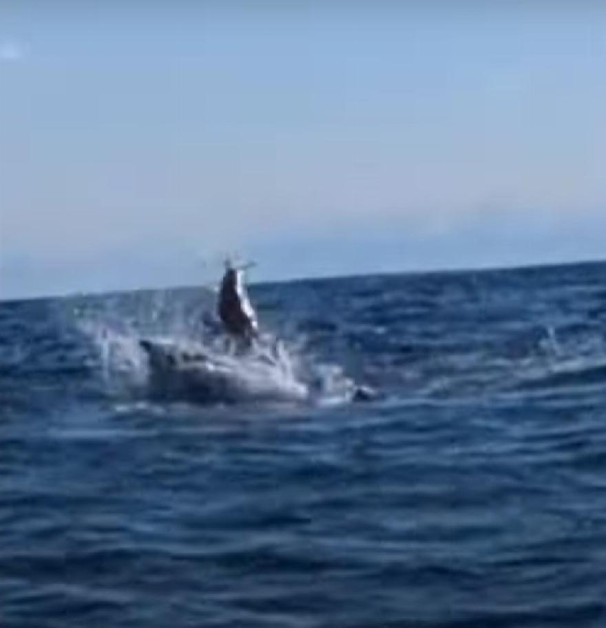 Το βίντεο που κατέγραψε δείχνει φώκιες να πηδούν από το νερό και να ξαναμπαίνουν μέσα σε αυτό.