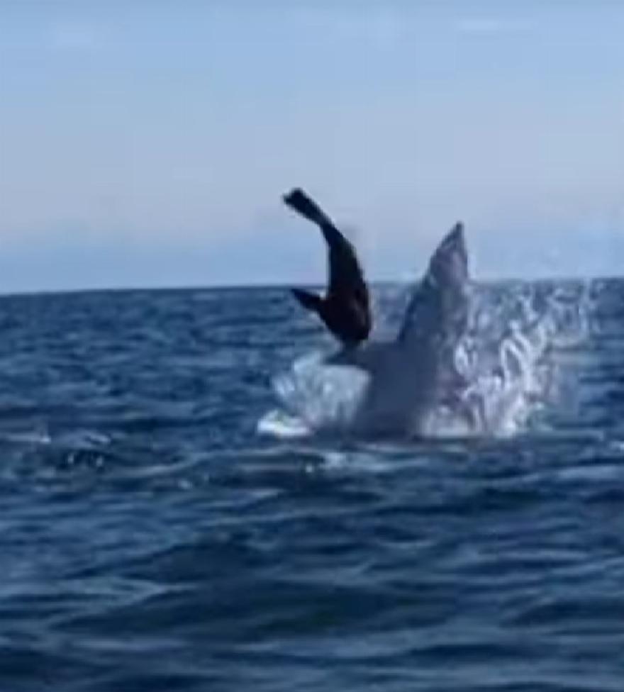Σύμφωνα με τον άνθρωπο που κατέγραψε το βίντεο, το αρπακτικό φαίνεται να είναι ένας μεγάλος λευκός καρχαρίας, και αν κρίνουμε από το λευκό χρώμα της κοιλιάς του, μάλλον είναι.