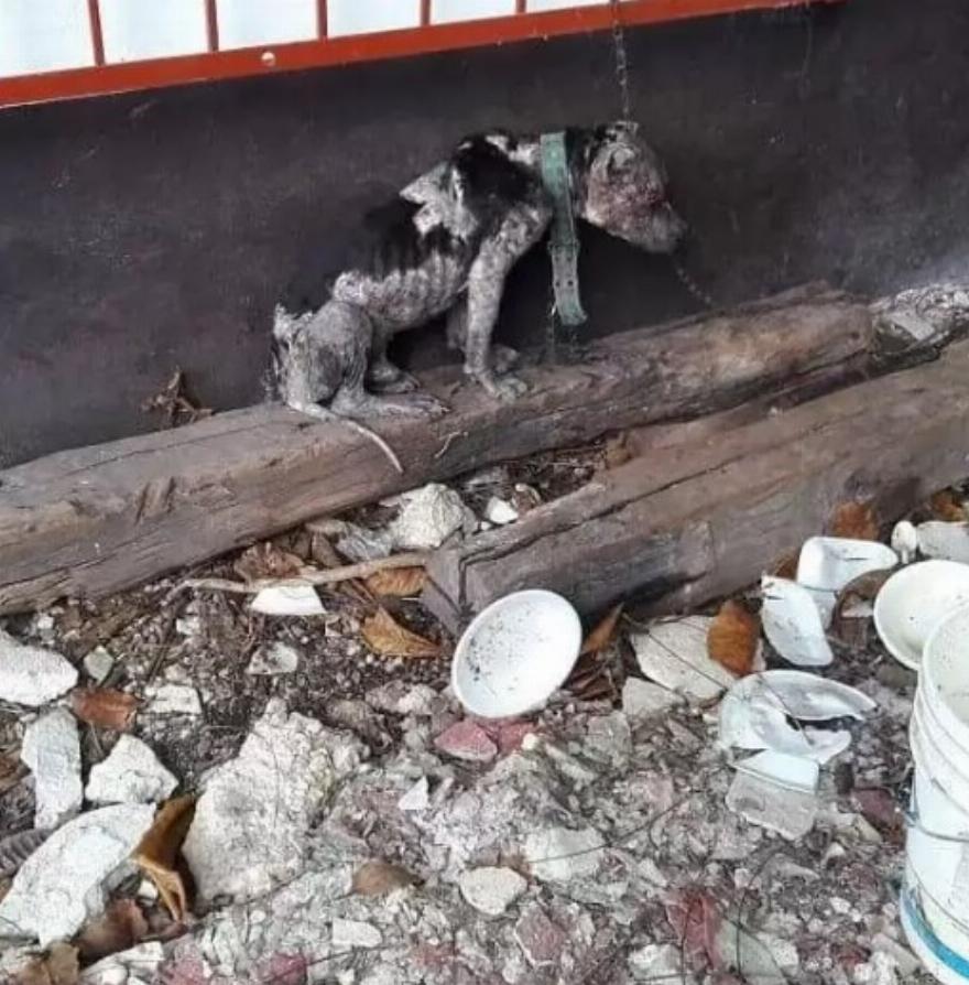Το 3χρονο πίτμπουλ δεν είχε φαγητό, νερό ή κάποιο καταφύγιο – και η αλυσίδα του ήταν τόσο κοντή, που δεν μπορούσε καν να ξαπλώσει για να κοιμηθεί. Αντ’ αυτού, έπρεπε να ακουμπήσει το κεφάλι του στην αλυσίδα για να ξεκουραστεί.