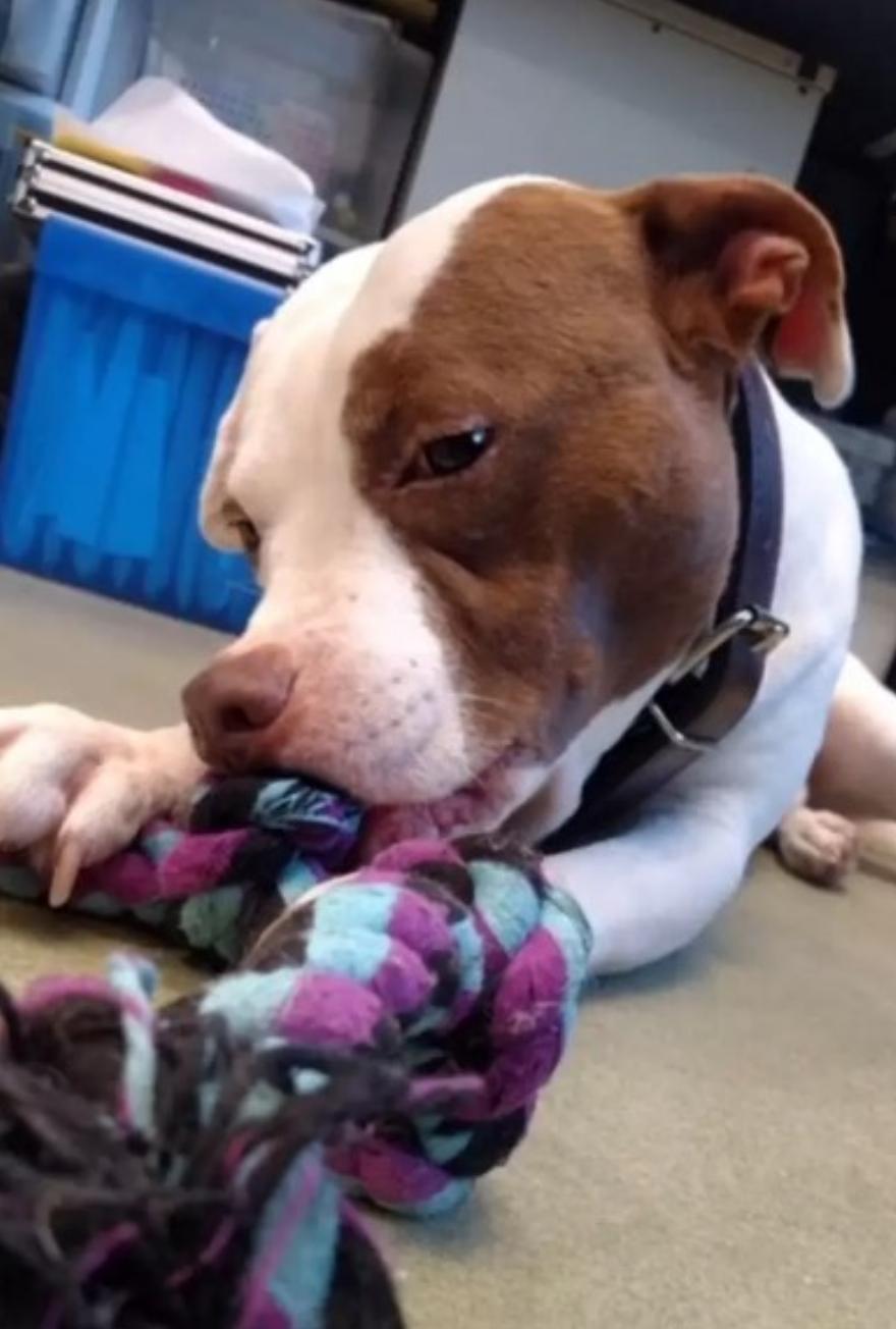Το 7χρονο μίγμα τεριέ του Στάφορντσάιρ περίμενε υπομονετικά για μια παντοτινή οικογένεια στο καταφύγιο ζώων της κομητείας Ιόνια στο Μίσιγκαν, αλλά τίποτα δεν φαινόταν να κολλάει.
