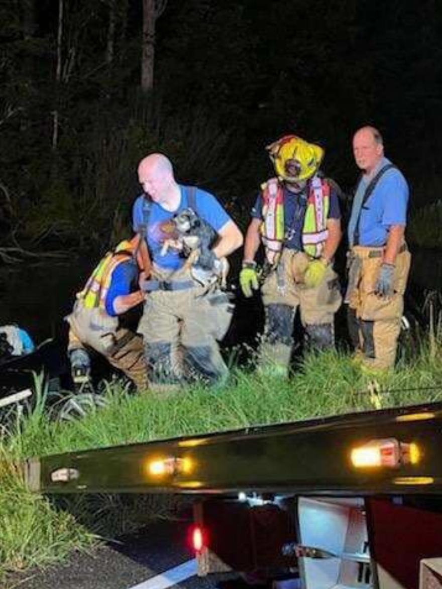 Αναποδογύρισαν το αυτοκίνητο για να μπουν μέσα αφού άκουσαν ένα κλαψούρισμα και ανακάλυψαν το κουτάβι κάτω από το ταμπλό στο πάτωμα, όπου υπήρχε θύλακας αέρα. Ο σκύλος δεν έπαθε τίποτα, σύμφωνα με τους αξιωματούχους.