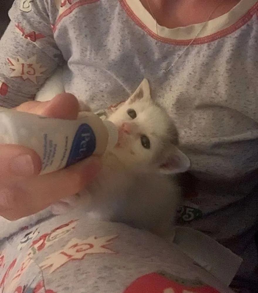 Η Morgan βρήκε το γατάκι μόνο του έξω, όταν άκουσε νιαουρίσματα από τα δέντρα πίσω από τη φάρμα της.
