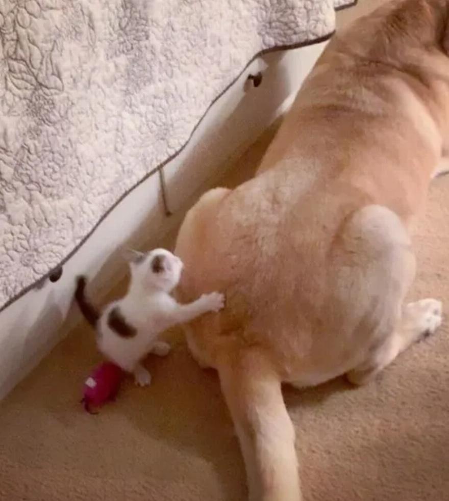 Το γατάκι νομίζει ότι είναι σκύλος.