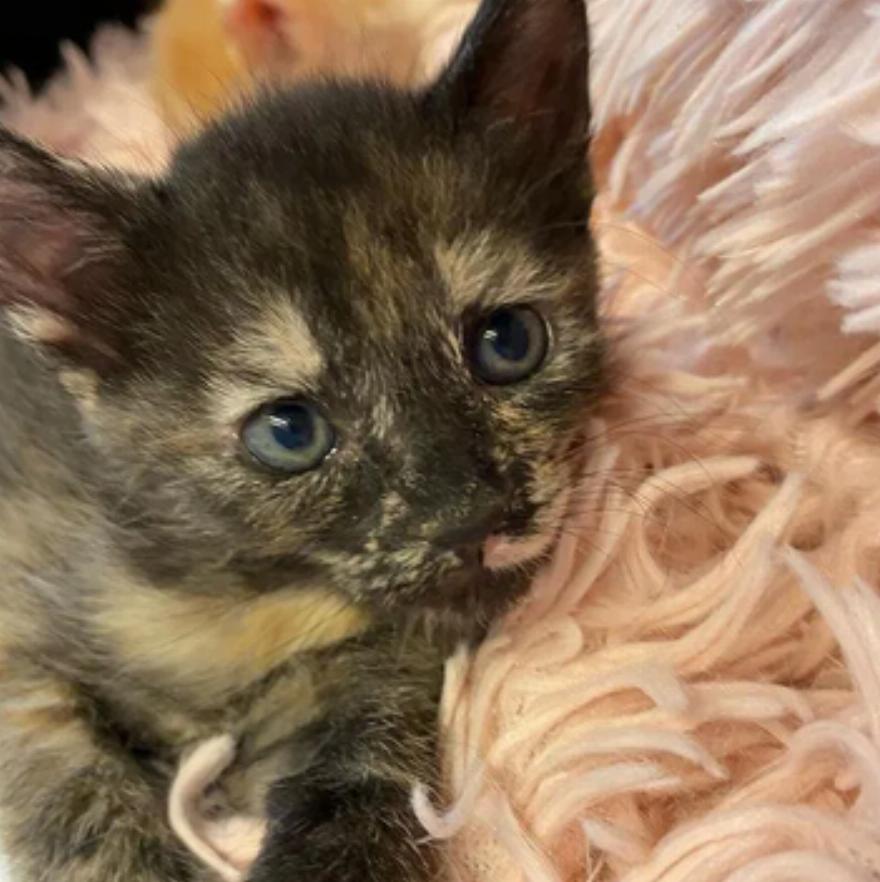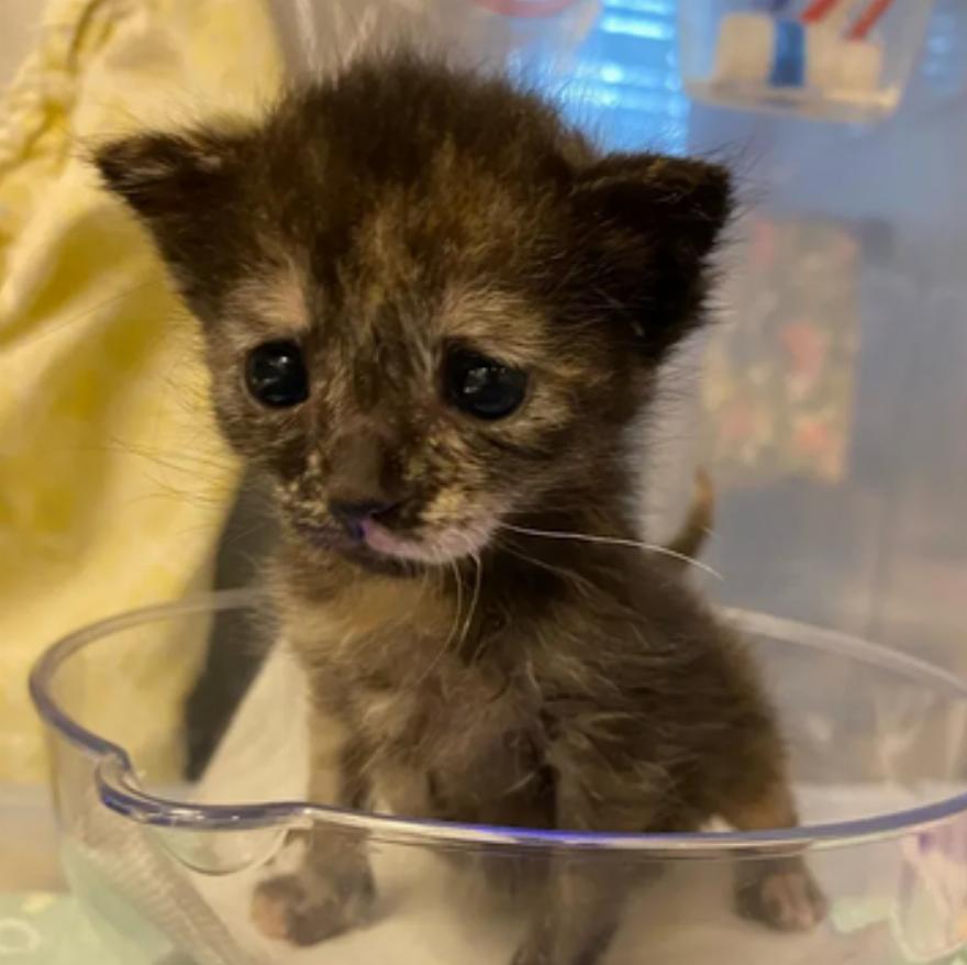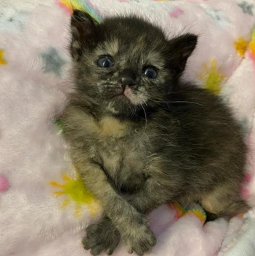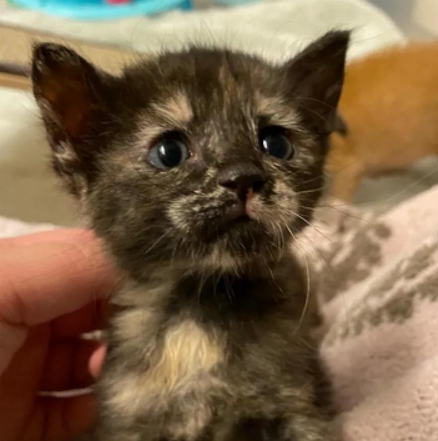 Μετά από μια εβδομάδα στο καταφύγιο, βρήκαν μια ανάδοχη οικογένεια για να φροντίσει το tortie γατάκι