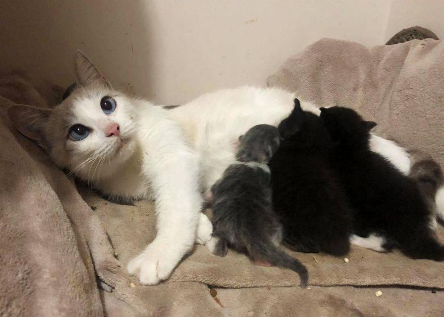 Η Kerry, εθελόντρια της , ήρθε σε επαφή με μια βαριά έγκυο γάτα που χρειαζόταν διάσωση. Όταν έφτασε να παραλάβει τη γάτα, είχε ήδη γεννήσει δύο γατάκια.