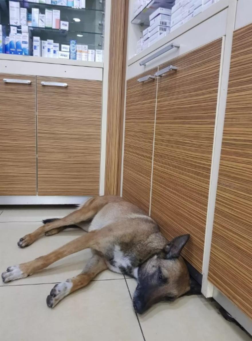 Για το υπόλοιπο της ημέρας, το φαρμακείο της Cengiz λειτούργησε ως ένας μικρός χώρος ανάρρωσης, δίνοντας στον κουρασμένο σκύλο την ευκαιρία να ξεκουραστεί εν ειρήνη.
