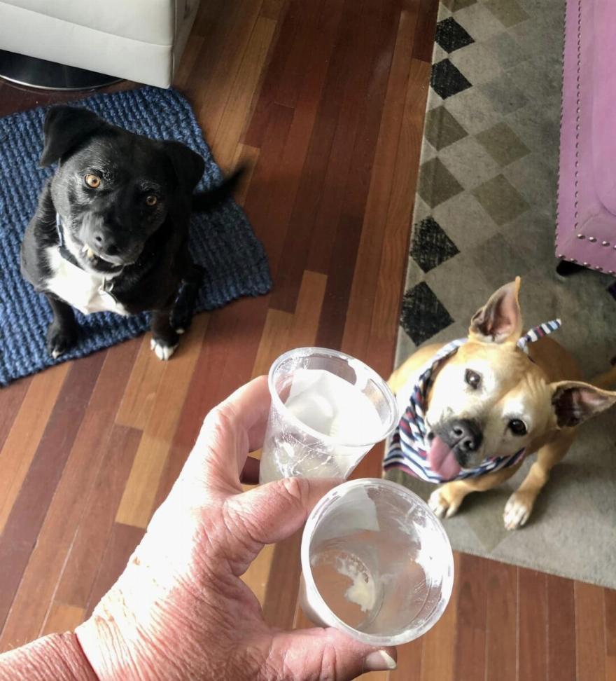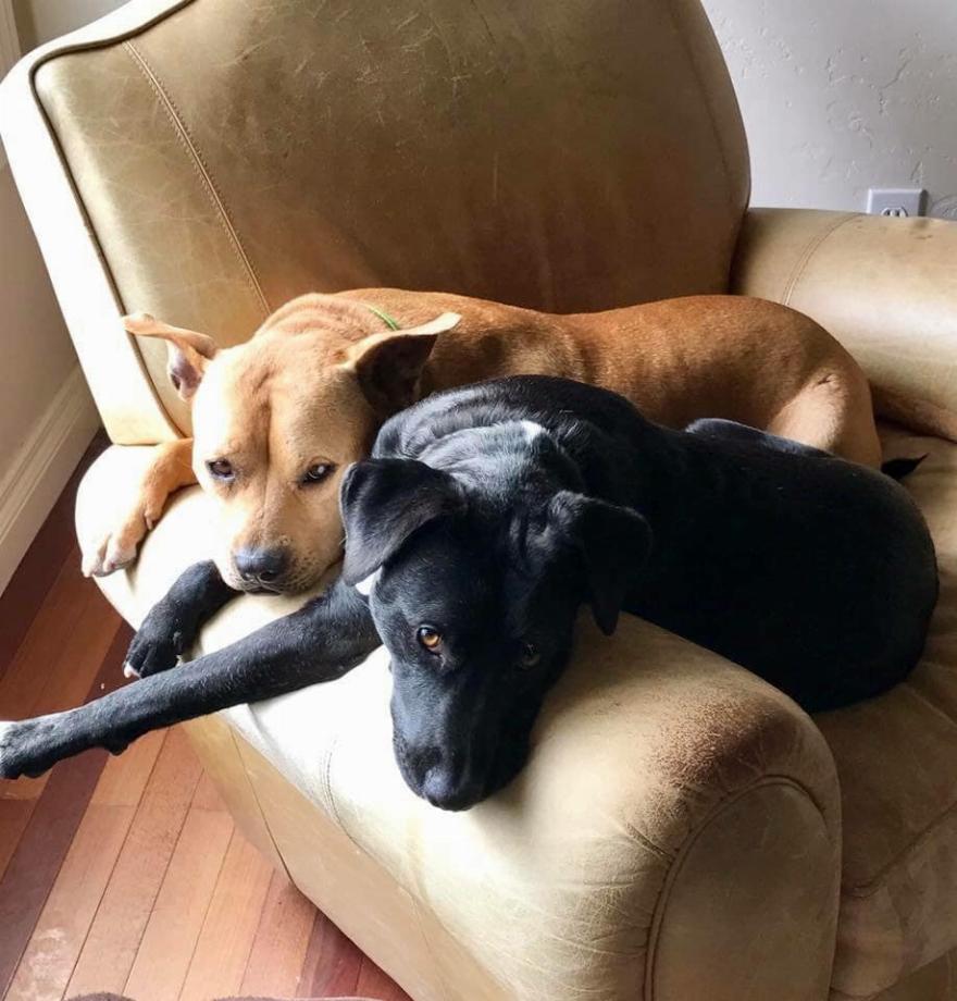 Η γυναίκα ξεκινά: “Είδα μια φωτογραφία με τους σκυλιά σκυμμένους στη γωνία, αγκαλιά το ένα με τον άλλο… Έμοιαζαν τόσο λυπημένα”.