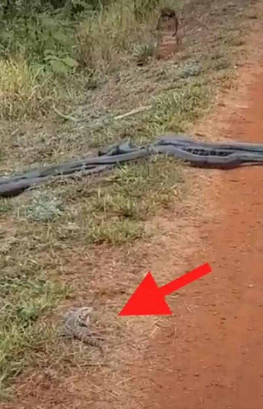 Εκεί, που εκτείνονταν στο χωματόδρομο μπροστά τους, βρισκόταν ένα τεράστιο ανακόντα – και δεν ήταν μόνο του.
