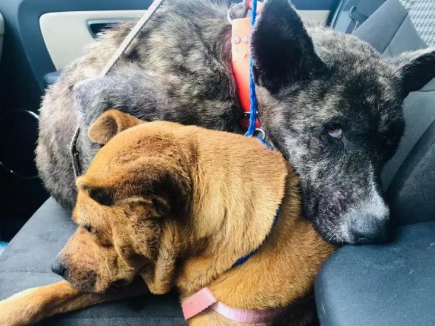 Η γυναίκα δεν το έβαλε κάτω. Πέρασε τον επόμενο ενάμιση μήνα κερδίζοντας την εμπιστοσύνη των σκύλων μέχρι που κατάφερε να τα πιάσει από τα παλιά τους κολάρα και να τα βάλει στο αυτοκίνητό της.