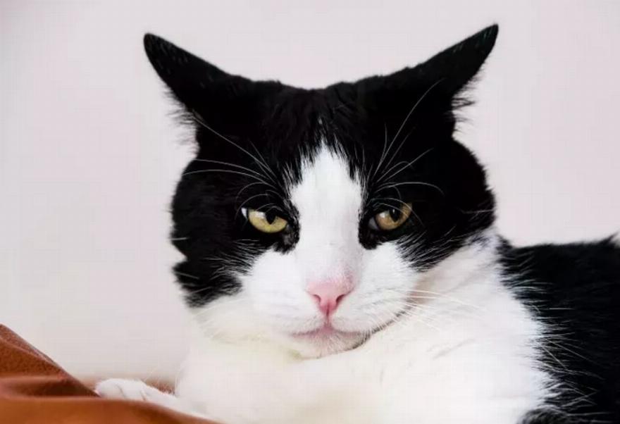 Το μοντάζ των βίντεο δείχνει το ασπρόμαυρο αιλουροειδές να κρατάει αποστάσεις από τις άλλες γάτες και να απλώνεται στο πάτωμα.