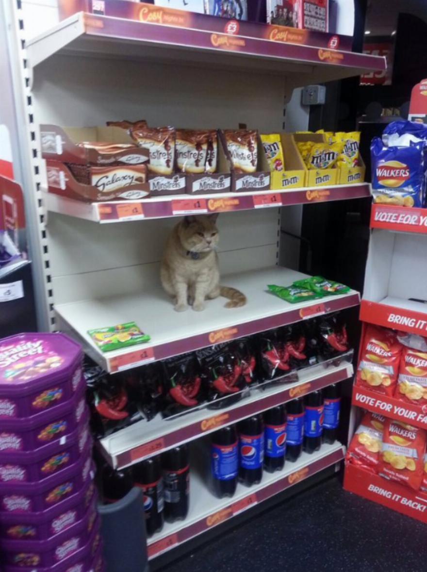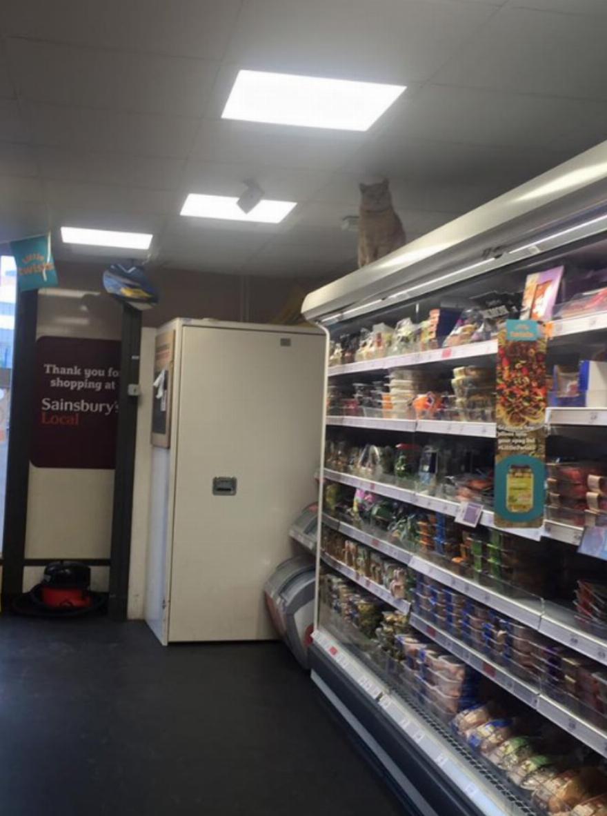Από πέρυσι, μια μυστηριώδης γάτα εκπλήσσει τους αγοραστές στην Αγγλία, εμφανιζόμενη τακτικά στα ράφια ενός παντοπωλείου παρά τις επανειλημμένες προσπάθειες απομάκρυνσης από το προσωπικό.