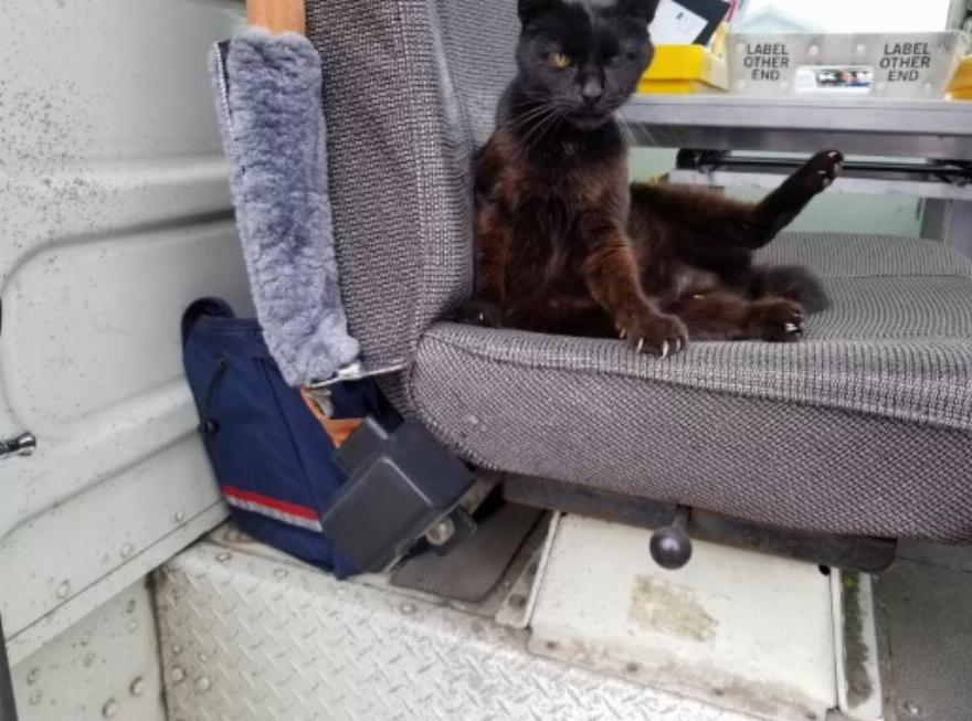 “Μετά από μερικούς μήνες που μύριζε γύρω από την πόρτα, άρχισε να σκαρφαλώνει μέσα και να τριγυρνάει στα πατώματα”, πρόσθεσε ο McEuen. “Αυτό γρήγορα εξελίχθηκε στο να βολευτεί στο κάθισμα. Απλώς αράζει μέχρι να τελειώσω με την αλληλογραφία”.