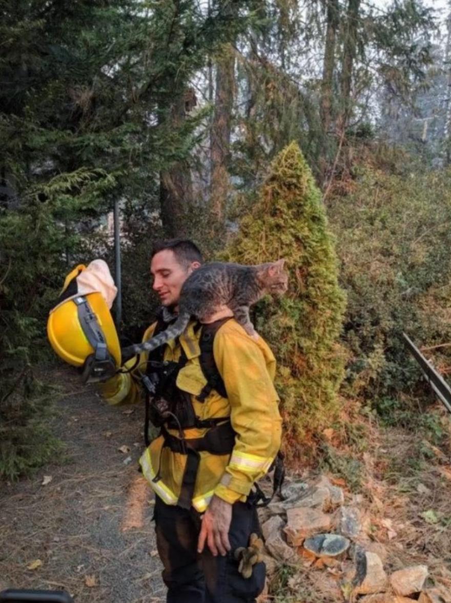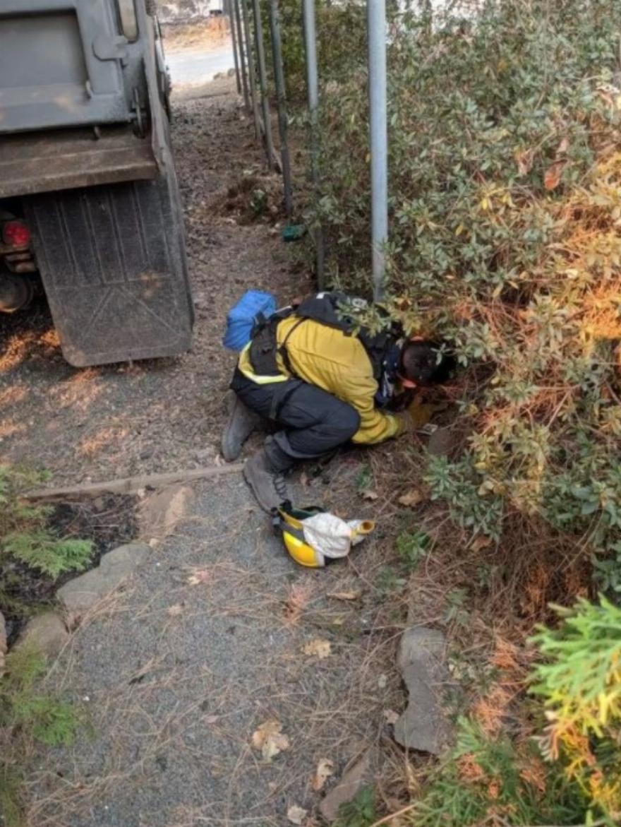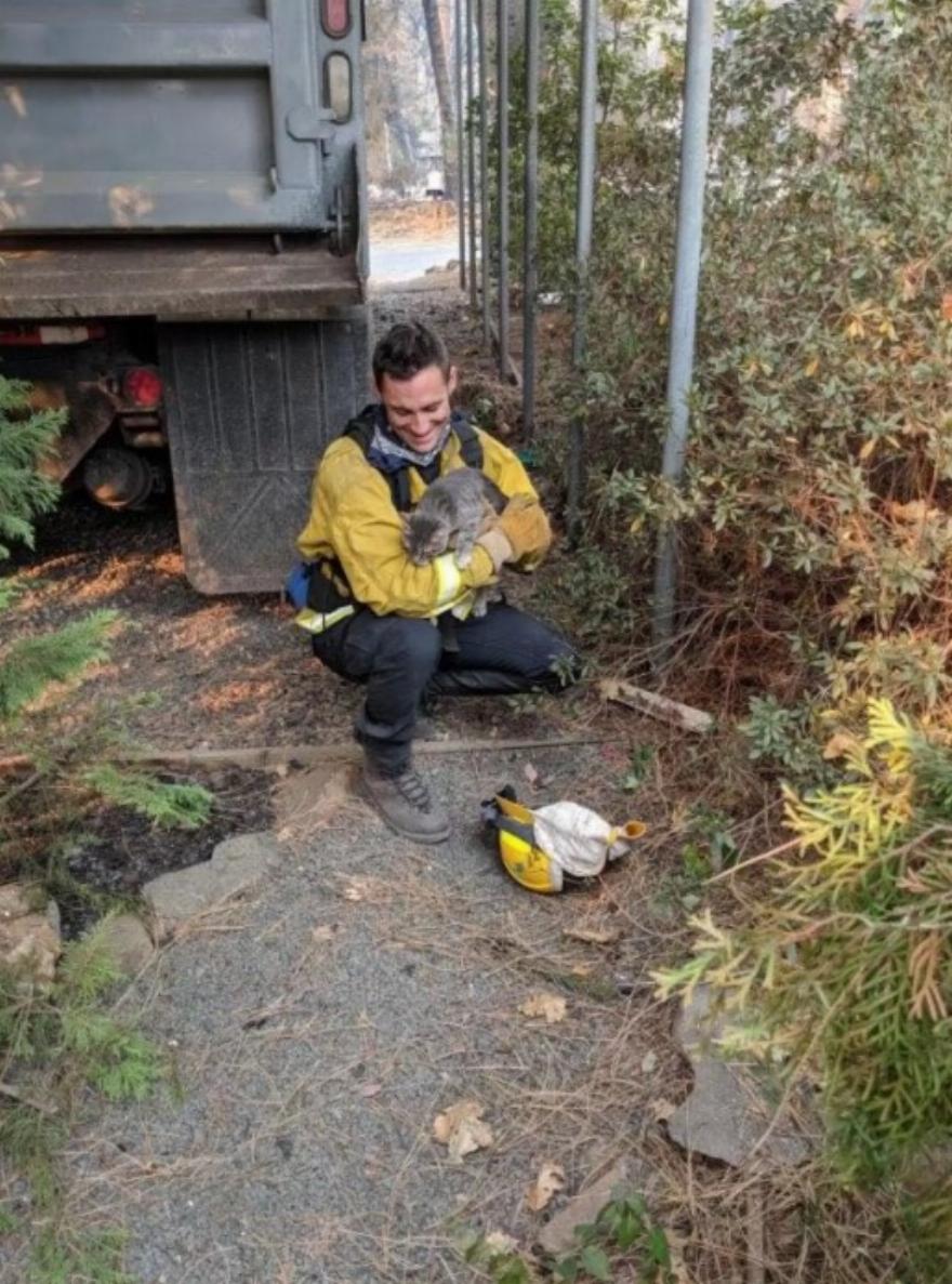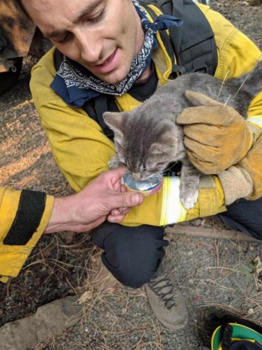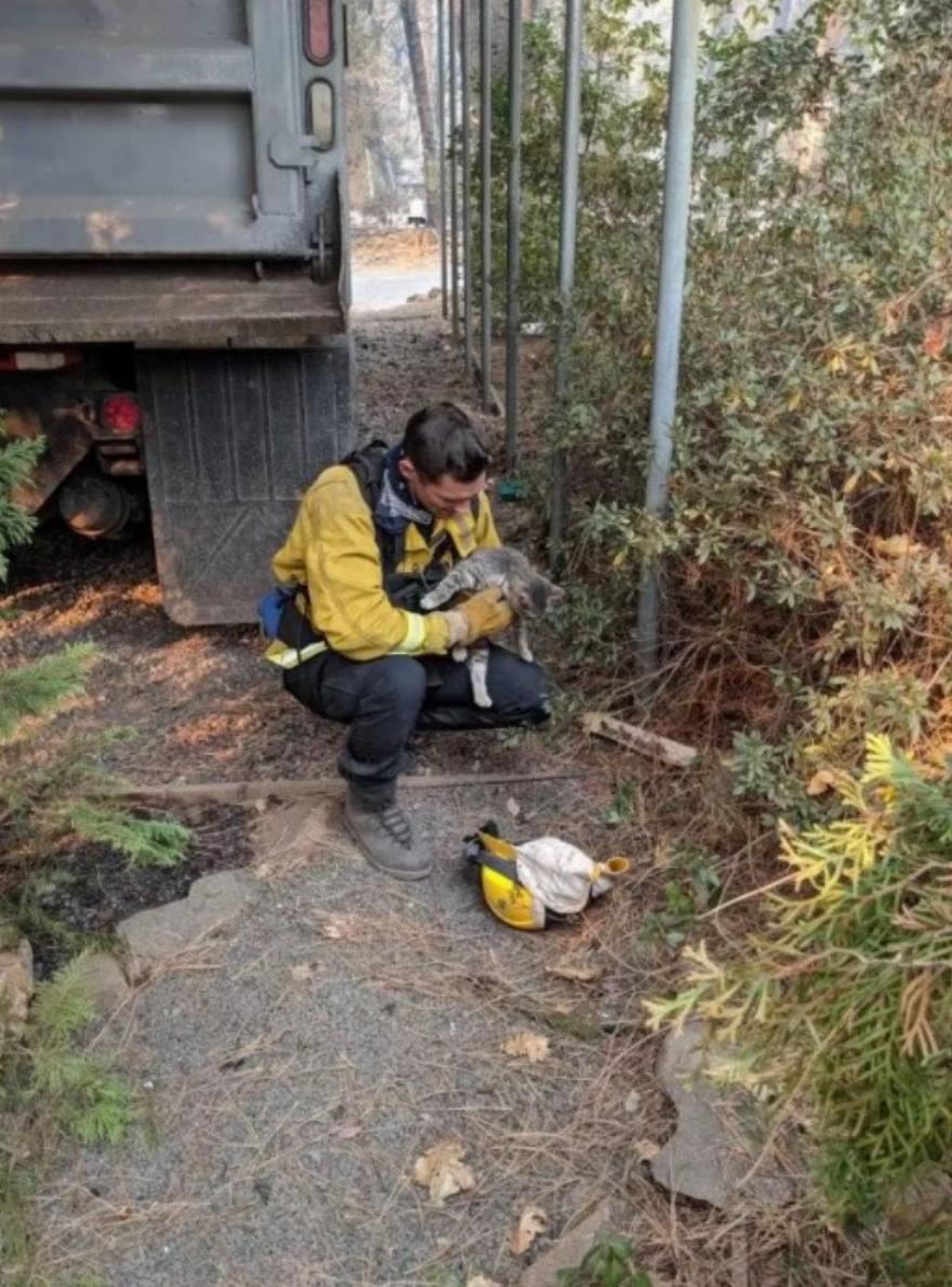 Ενώ περιπολούσαν σε περιοχές που επλήγησαν από την πυρκαγιά Camp Fire και εκκενώθηκαν λόγω της τεράστιας πυρκαγιάς, ένα συνεργείο της Πυροσβεστικής Υπηρεσίας Foster City άκουσε έναν ήχο που δεν μπορούσαν να αγνοήσουν – τις απελπισμένες κραυγές ενός πλάσματος που είχε ταμπουρωθεί κάτω από έναν θάμνο.