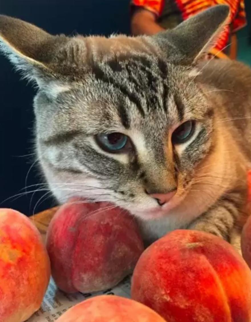 Οι λαϊκές αγορές είναι γεμάτες από καταπληκτικά προϊόντα και μια γάτα δεν θα μπορούσε να είναι πιο ενθουσιασμένη που επιτέλους έφτασε η εποχή των ροδάκινων.