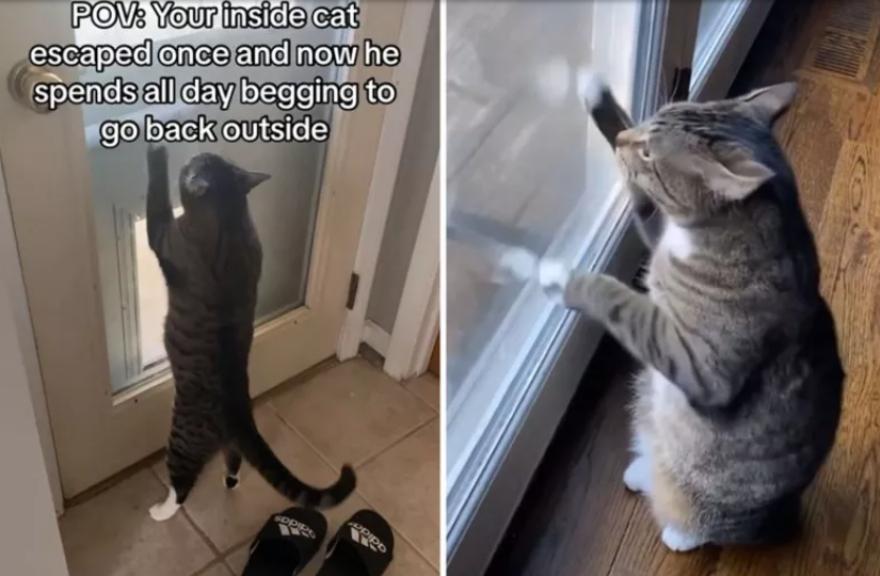 Ο γάτος Winston πήρε μια γεύση από την ύπαιθρο αφού δραπέτευσε μια φορά. Δεν πήγε μακριά, δήλωσε ο ιδιοκτήτης του. Αλλά λίγο μόνο ήταν αρκετό γι’ αυτόν. Τώρα, περνάει κάθε μέρα παρακαλώντας να ξαναβγεί έξω.