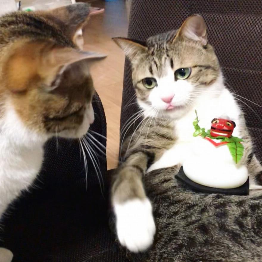 Όπως ο Unagi, έτσι και ο Suzume ήταν επίσης ένα γατάκι διάσωσης και έτσι ήξερε ακριβώς πώς να συμπεριφερθεί στον νέο του αδελφό.
