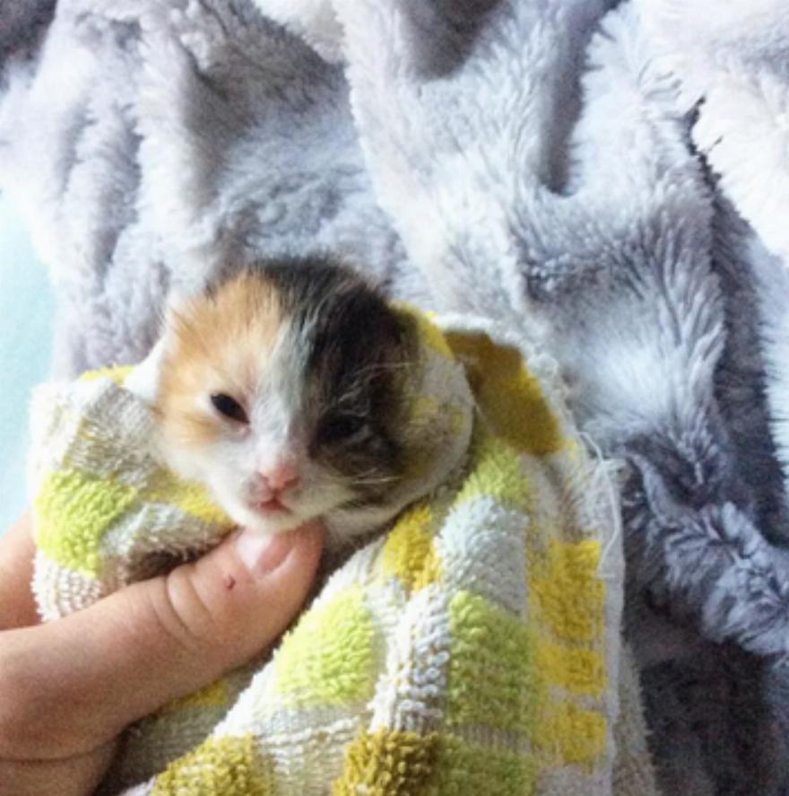 Πριν από μια εβδομάδα, η Nova Cat Clinic δέχτηκε ένα μικρό γατάκι μιας ημέρας που χρειαζόταν επειγόντως φροντίδα. Η calico ήταν η μοναδική επιζών από τα γατάκια που γεννήθηκαν.