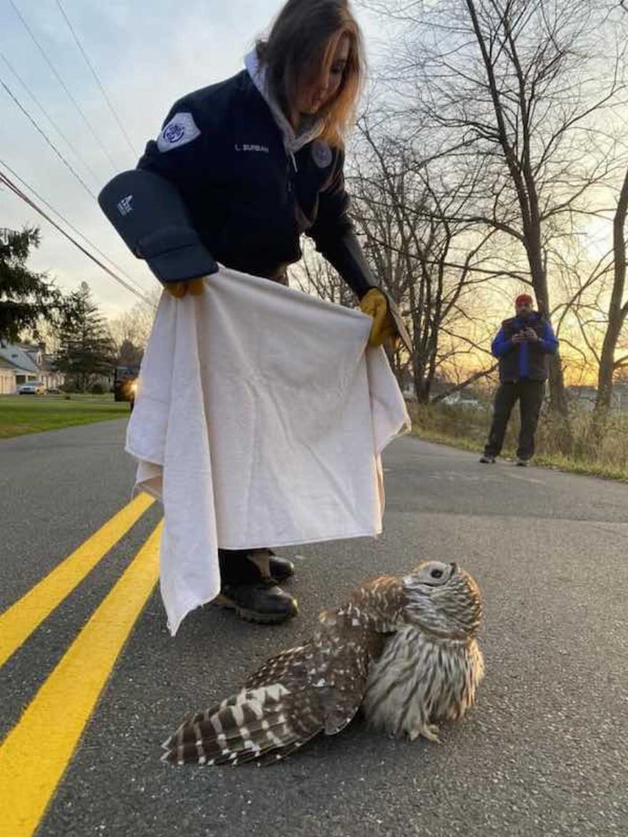 Η Laura Burban, διευθύντρια του καταφυγίου ζώων Dan Cosgrove, ήταν εξίσου πρόθυμη να βοηθήσει την κουκουβάγια μετά το τηλεφώνημα που έλαβε για να έρθει να βοηθήσει.